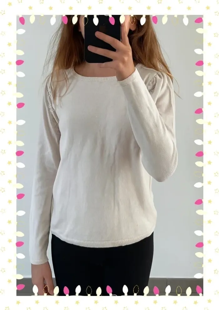 #lesliemp_fille #lesliemp_12ans Craquez pour ce joli pull Bonton crème tout doux, parfait pour les journées cocooning ou pour une tenue chic et confortable ! 💕 Avec ses jolis détails ajourés sur les côtés et ses petites fronces épaules, il apporte une touche d'élégance discrète. Facile à assortir avec un jean ou une jupe, il deviendra vite un indispensable du dressing de votre fille ! 💡 État : Très bon état 📏 Taille : 12 ans 🎨 Couleur : Crème 🌸 Marque : Bonton Envoi rapide et soigné 🚀 N’hésitez pas à me contacter pour un lot ou toute question ! 😊