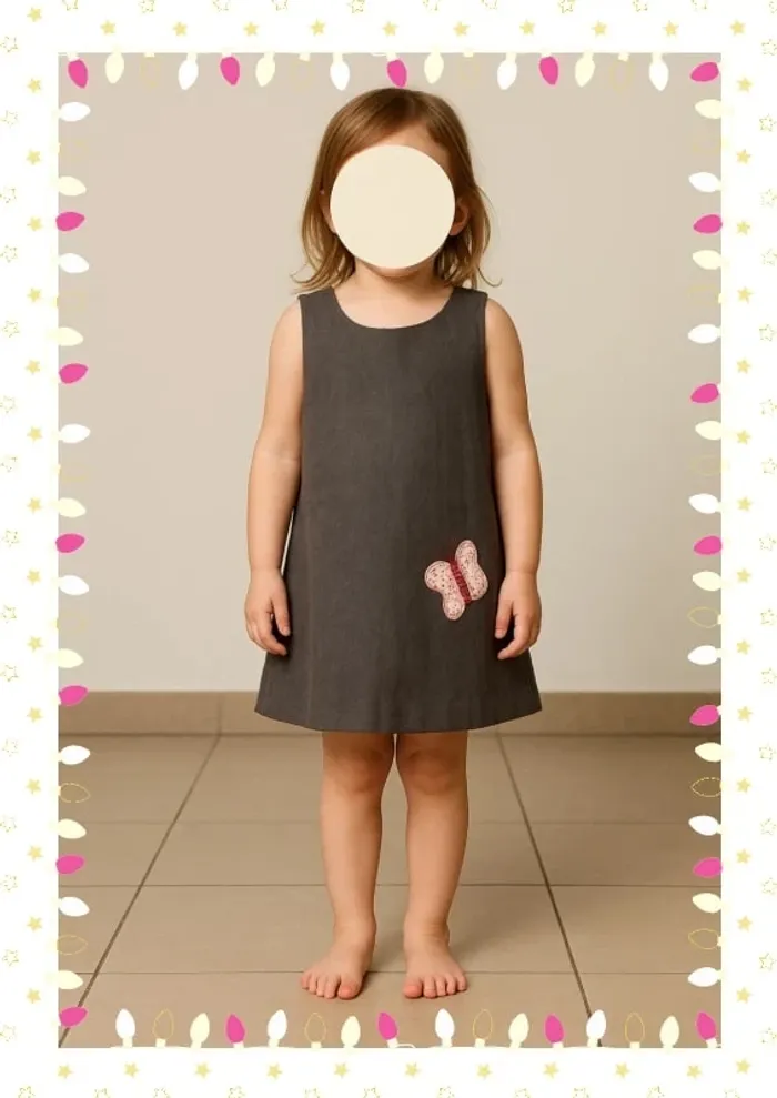 #lesliemp_fille #lesliemp_2ans Une petite merveille unique ! Robe sans manches en tissu gris, doublée d’un joli coton fleuri et décorée d’un papillon appliqué sur le bas. ✨ Coupe confortable, facile à enfiler grâce à sa forme trapèze. Parfaite pour les premiers pas ou pour un joli look à la crèche ! 🎀 Finition soignée, pièce artisanale faite avec amour. 📏 Taille : 2 ans 🧼 Lavée, repassée, en excellent état. 💌 Envoi rapide et soigné.