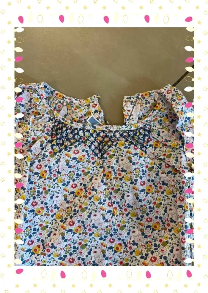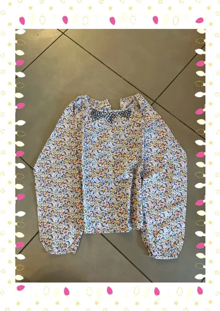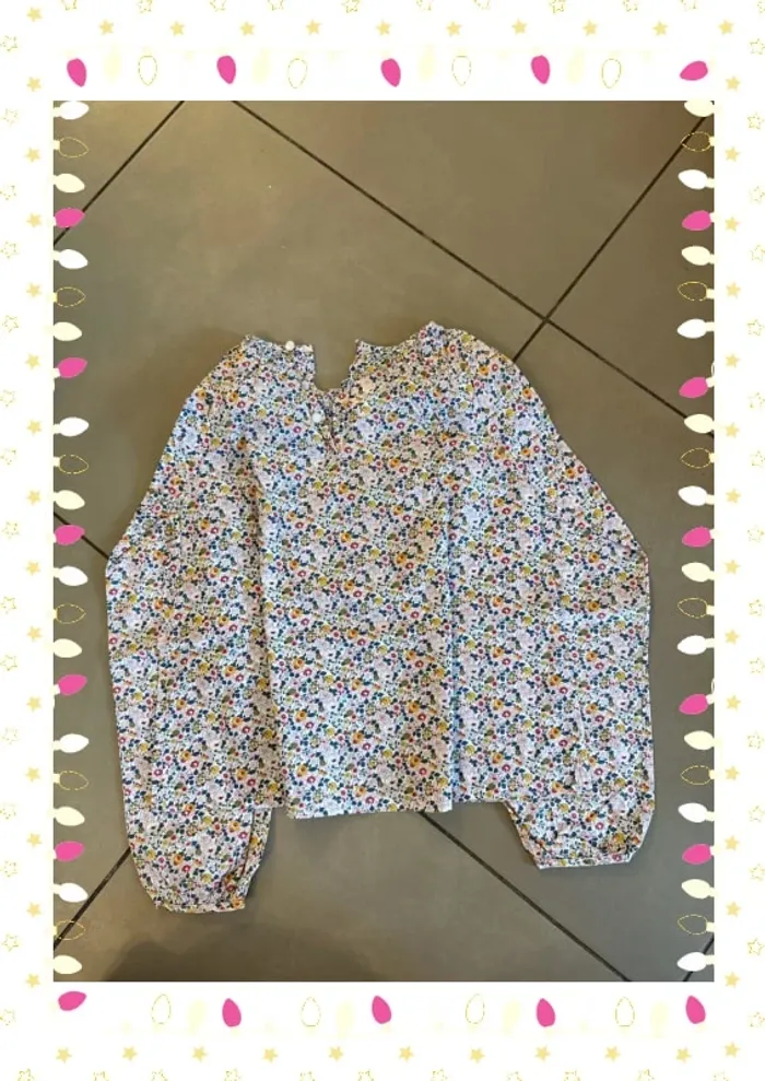 #lesliemp_fille #lesliemp_10ans Adorable chemisier Jacadi pour fille, taille 10 ans. Motif floral liberty multicolore sur fond blanc, avec de jolis smocks brodés bleu marine au niveau du col. Manches longues légèrement bouffantes avec élastiques aux poignets. Fermeture boutonnée dans le dos. Tissu léger, parfait pour le printemps ou les cérémonies. 💡 Très bon état. 📦 Envoi rapide et soigné 🎁 N’hésitez pas à consulter mes autres annonces fille 10 ans pour des lots Jacadi, Cyrillus, etc.