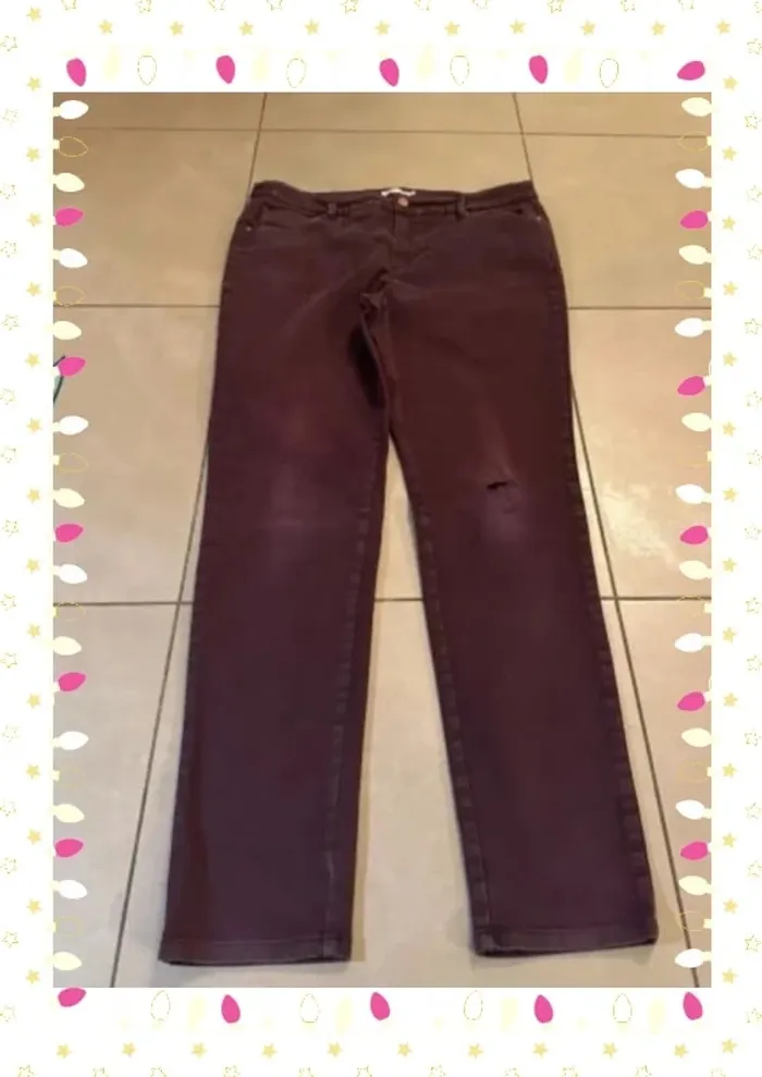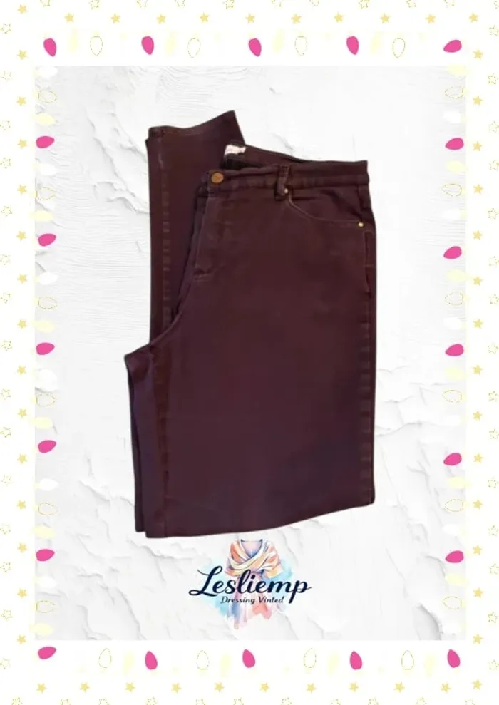 Petit trou #lesliemp_femme Coloris : prune Coupe droite classique Taille standard, fermeture bouton + zip Matière agréable à porter 🧵 À noter : petit accroc visible sur l’une des jambes (voir photo), d’où le petit prix. Peut être repris ou porté tel quel pour un effet casual/décontracté. 🧼 Lavé et repassé, prêt à être porté ! 📦 Envoi rapide et soigné.