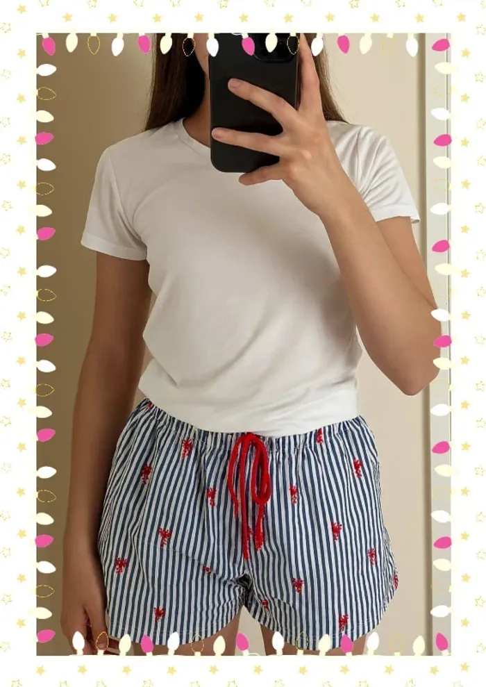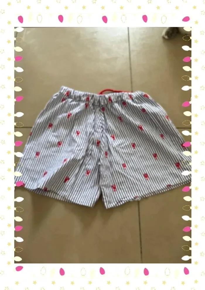 #lesliemp_garcon Coup de cœur assuré pour ce short rayé bleu & blanc avec ses adorables petits homards rouges 🦞 cousus avec amour ! Fabrication artisanale, coupe confort, et un style qui sent bon les vacances à l’île de Ré. 🎯 Taille 14 ans, parfait pour un ado qui a du goût (et du caractère). 🌿 En coton léger, il accompagne aussi bien une virée en bord de mer qu’un apéro au jardin. Petit plus : le cordon rouge flashy qui donne la vibe “petit moussaillon rebelle”. 🧵 Pièce unique, alors ne traîne pas trop... les homards n'attendent pas !