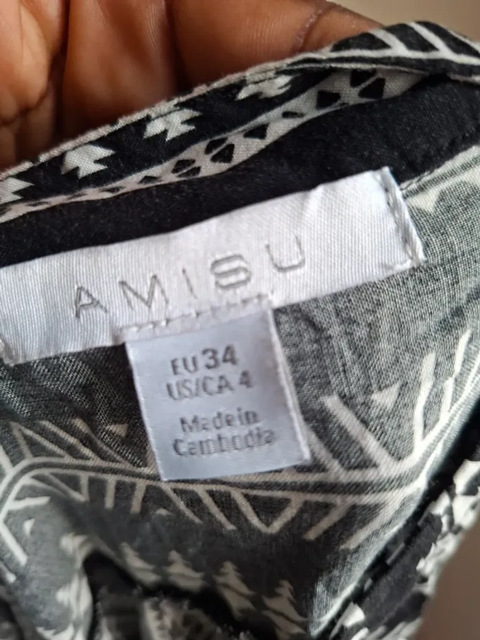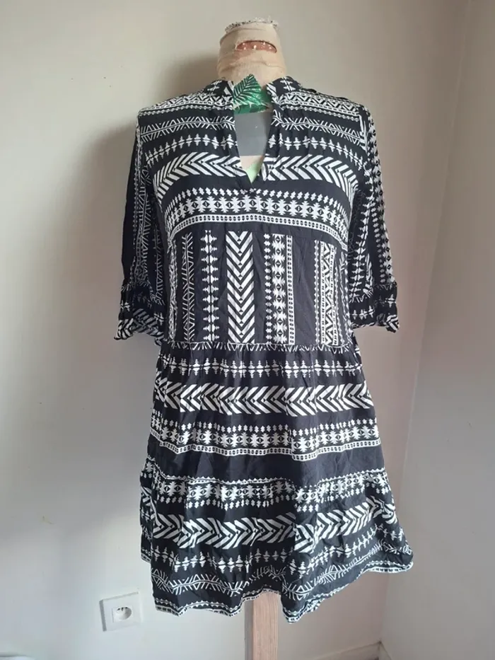 Robe courte noire et blanche imprimée, Amisu, neuve, taille 34 100% viscose Aisselle à aisselle 47cm, épaule à épaule 33cm, longueur 84cm #taille34_sofaia971 #bohème #robeété #robefemme #amisu #robe #rob #vestir #vestido #vestito #jurk
