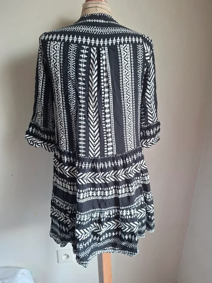 Robe courte noire et blanche imprimée - bohème, Amisu, neuve, taille 34 - photo numéro 2