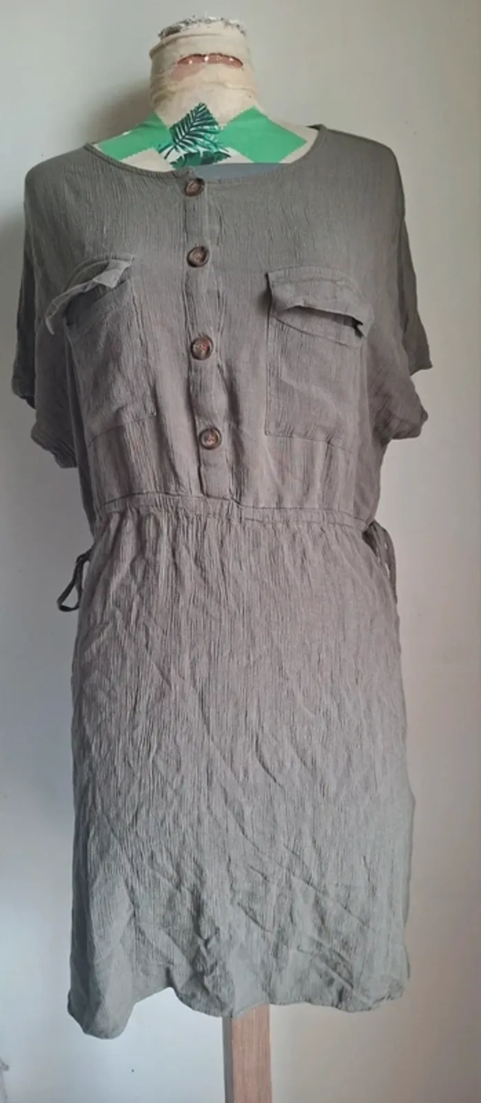 Robe Primark kaki, neuve, taille 44 - légère et fluide avec cordon ajustable - photo numéro 2