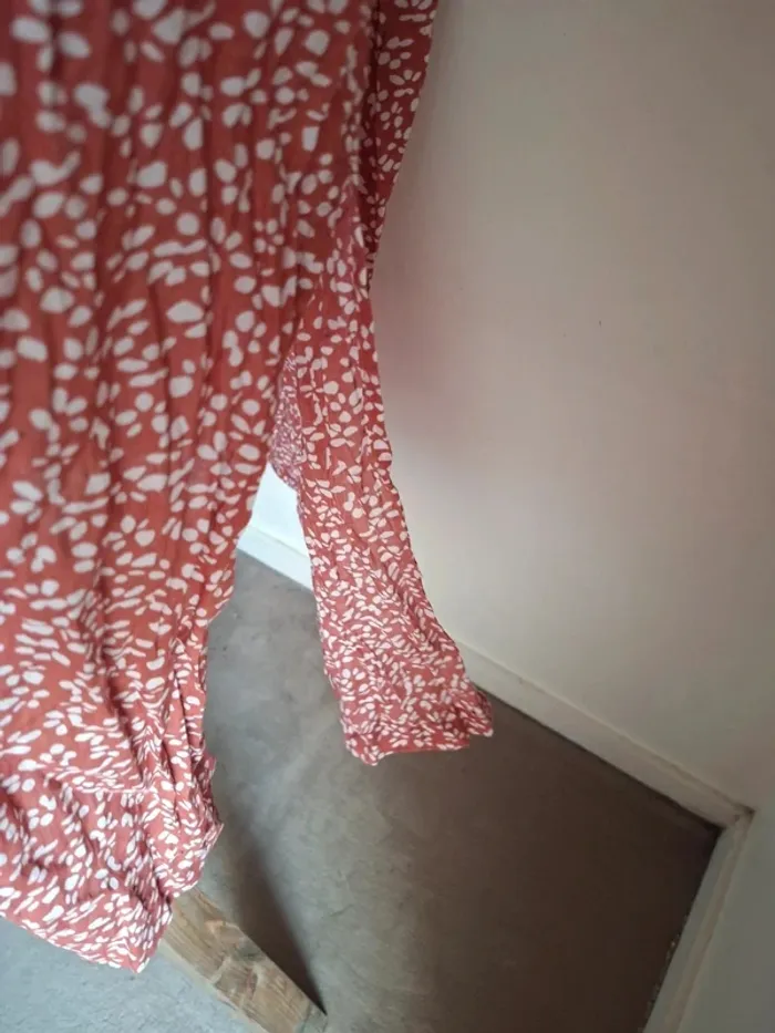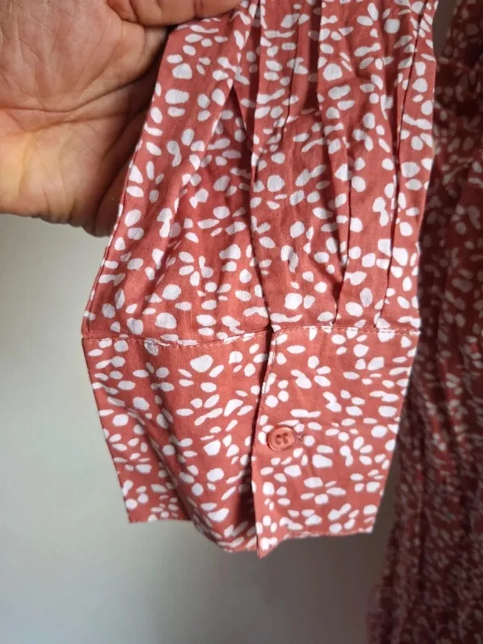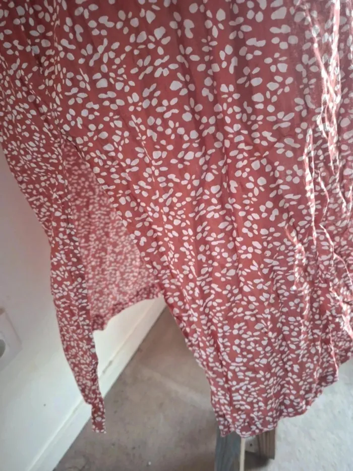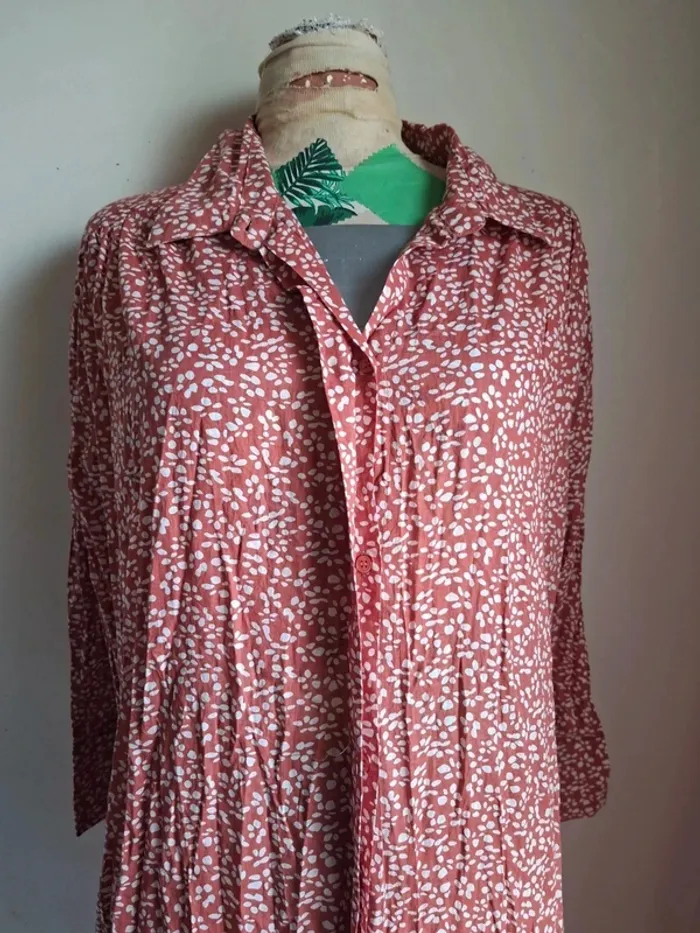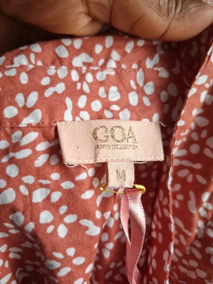**Robe légère Goa - Taille M - Neuve** Découvrez cette magnifique robe Goa, idéale pour les journées ensoleillées ! Avec sa coupe fluide et sa matière 100% coton, elle est ultra-confortable et parfaite pour toutes les occasions. Sa belle couleur rose parsemée de motifs délicats en fait une pièce unique et tendance. La robe est dotée de fentes élégantes sur les deux côtés pour une touche de féminité supplémentaire. **Dimensions :** - Aisselle à aisselle : 66 cm - Épaule à épaule : 57 cm - Longueur : 118 cm **Caractéristiques :** - Matière : 100% coton - Fentes en bas des deux côtés - Neuve, jamais portée Cette robe est un indispensable de votre garde-robe estivale. N'attendez plus pour vous l'approprier ! #taillem_sofaia971 #robe #bohème #chic #chic #chemise #fluide #tendance #RobeGoa #ModeÉthique #Coton100% #RobeLégère #StyleBohème #TailleM