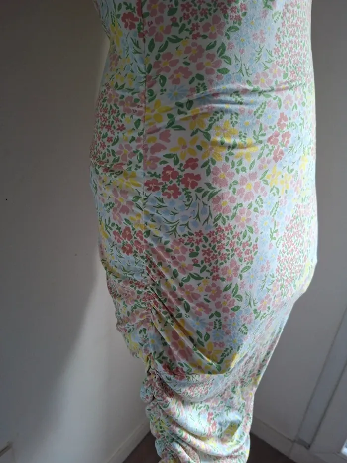 Robe fleurie pastel- coupe drapée élégante et fluide, Liberté essentiel, neuve, taille S/M Matière 90% polyester, 10% spandex Aisselle à aisselle 45cm, épaule à épaule 34cm, longueur 108cm #tailles_sofaia971 #élégante #drapée #fluide #basique #confortable #printemps #été #casual #chic #robe #intemporel #robeété #robefemme #robe #rob #vestir #vestido #vestito #jurk
