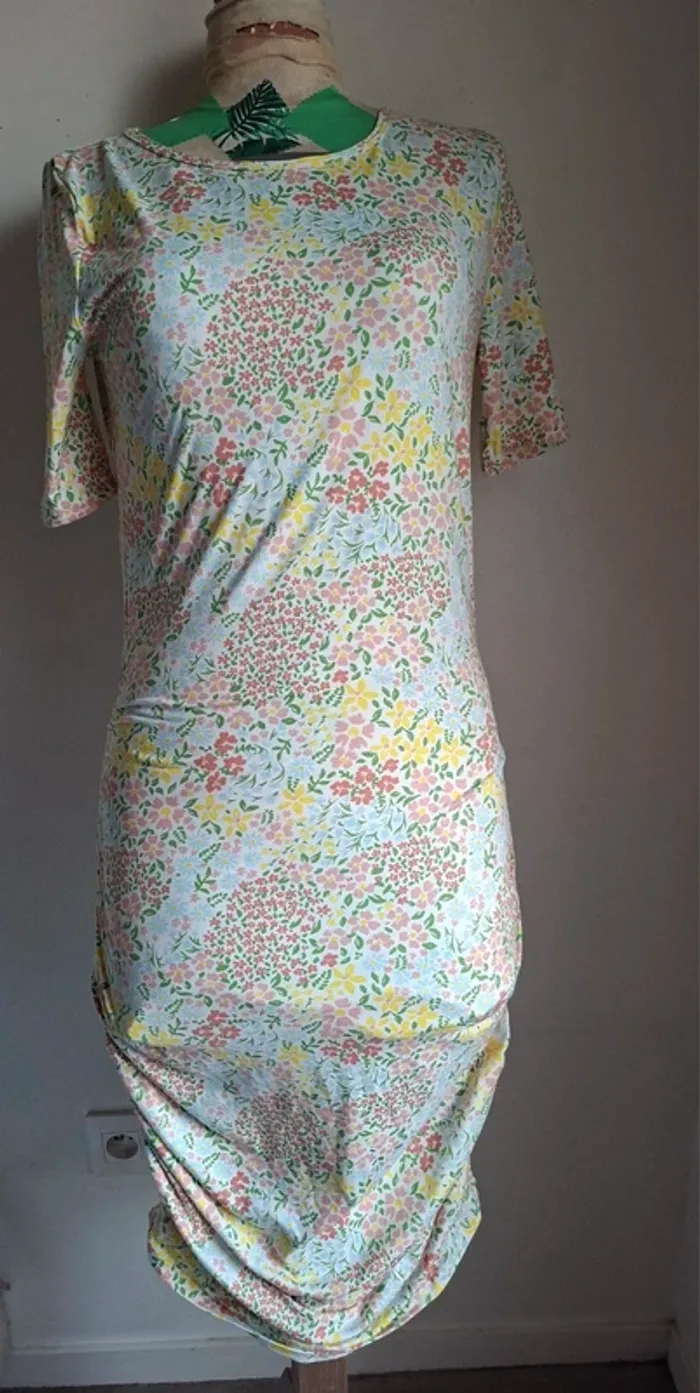 Robe fleurie pastel- coupe drapée élégante et fluide, Liberté essentiel, neuve, taille S/M - photo numéro 2