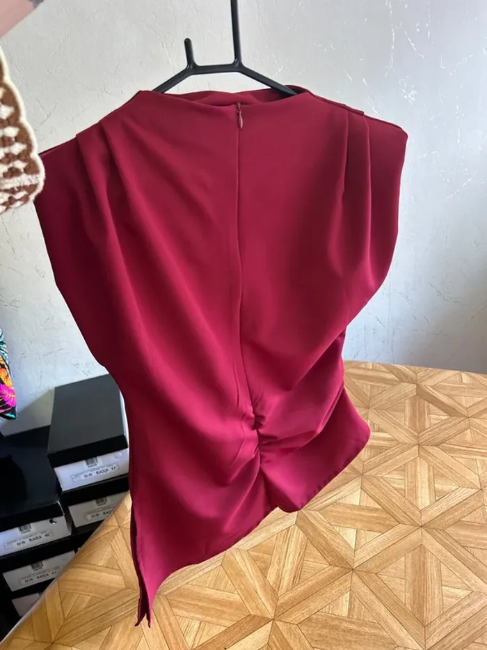 Neuf avec étiquette Jolie top femme taille M mesures en photos Avec fermeture dans le dos et épaulettes #topfemme38 #tshirtetefemme #tshirtfemme38 #blousefemme38 #topbordeaux #