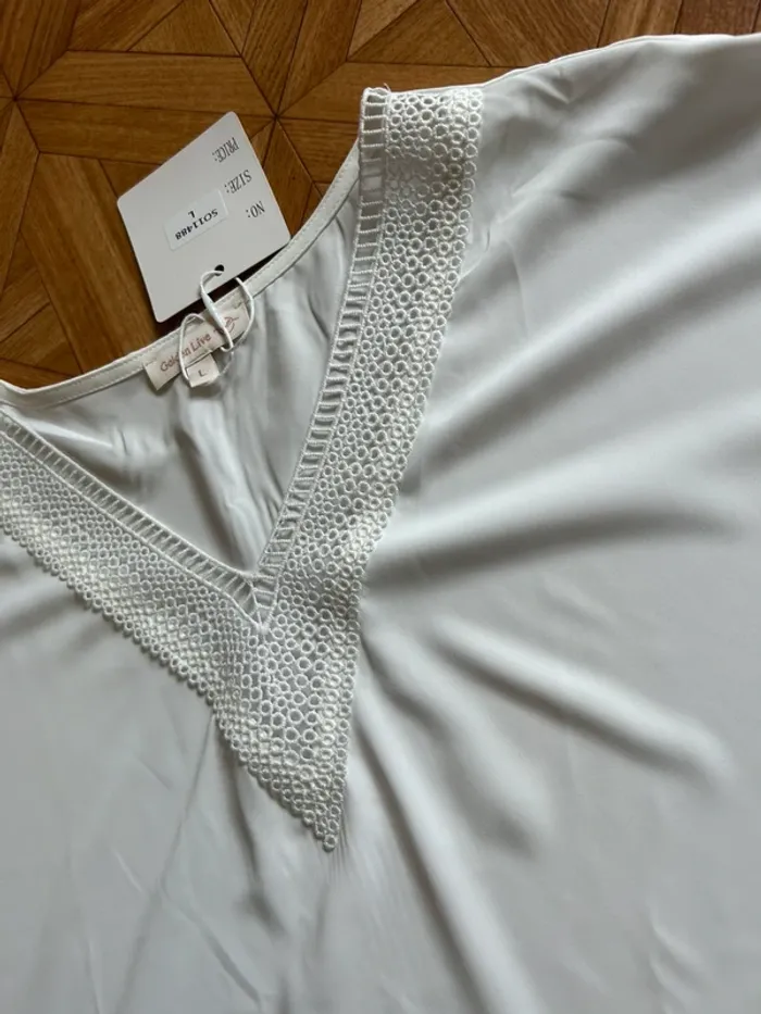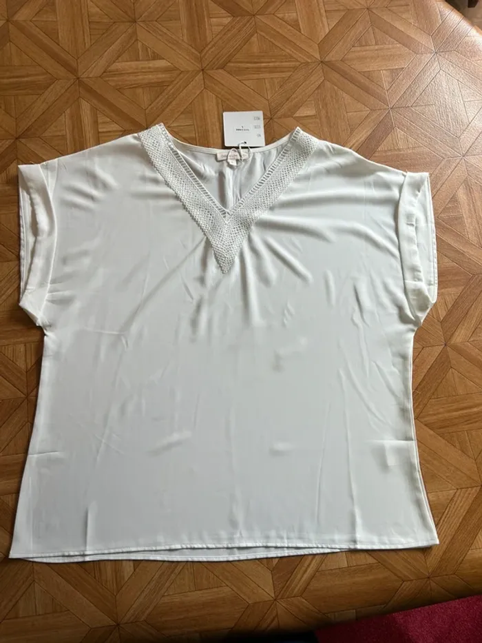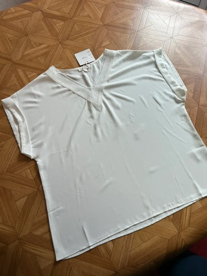 Neuf avec étiquette Jolie top femme blanc Taille L conviens pour un 40/42 mesures en photos #topfemme40 #blousefemme40 #tshirtetefemme #tshirtfemme40 #tshirtfemme42 #chemisierfemme40