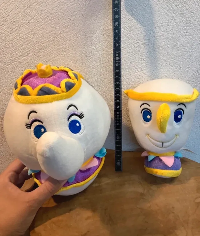 Lot de 4 peluches la belle et la bete disney avec miss samovar, zip, lumière et Big ben à noter Big ben n a plus son etiquette. Mesure sur photo. #peluchedisneyjouetsvintageandco #peluchedisney #peluchelabelleetlabete