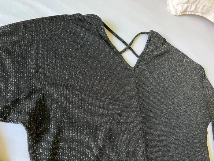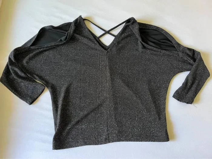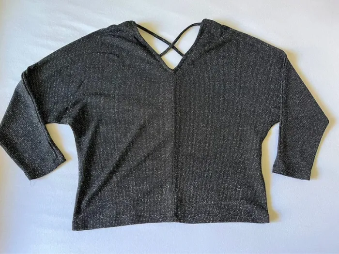 Très beau pull léger de couleur noir argenté Fendu au niveau des épaules Taille S En très bon état
