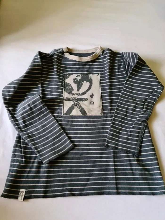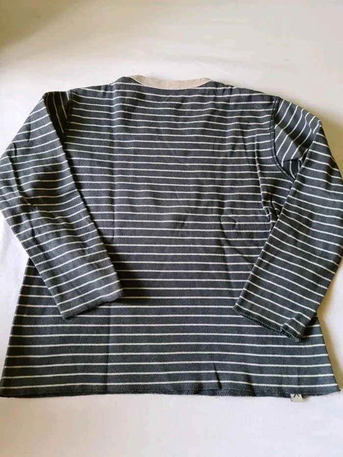 T-shirt gris et beige a manches longues Marque Okaidi Taille 8/9 ans en très bon état