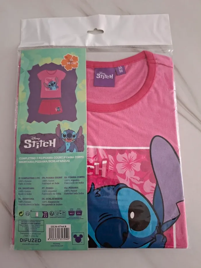 Ensemble Tee-shirt short Lilo & Stitch neuf avec étiquette taille 3 ans - photo numéro 3