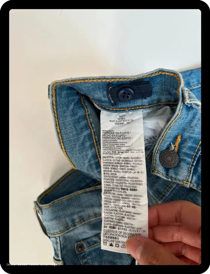 Jean Levi's 502 Regular Taper pour homme – coupe moderne, droite au niveau des cuisses puis légèrement fuselée vers le bas pour un style tendance et confortable. Coloris bleu, taille W29 L31. 🔍 Détails : Très bon état général ✅ Légère trace visible (voir photos) 📸 Longueur depuis la taille : 109 cm Largeur de la taille : 40 cm Expédié sous 24h 📦 ✨ Un Levi’s 502 incontournable pour un look casual et polyvalent, facile à associer avec baskets ou chaussures habillées. #Levis502 #LevisRegularTaper #JeanHomme #JeanBleu #ModeVintage #SNVintagefr #BP26 #LevisJeansMen #502Taper #RegularTaper #BlueJeans #MensStyle #SNVintagefr #BP26 #VaqueroLevis #JeansHombre #502Taper #PantalonAzul #ModaVintage #SNVintagefr #BP26 #JeansLevisUomo #502RegularTaper #PantaloniJeans #BluDenim #ModaVintageItaliana #SNVintagefr #BP26 #LevisHerrenjeans #502RegularTaper #BlaueJeans #VintageMode #SNVintagefr #BP26