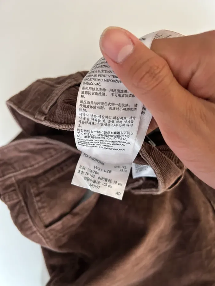 Coloris marron, taille W31 L28 (équivalent FR40).