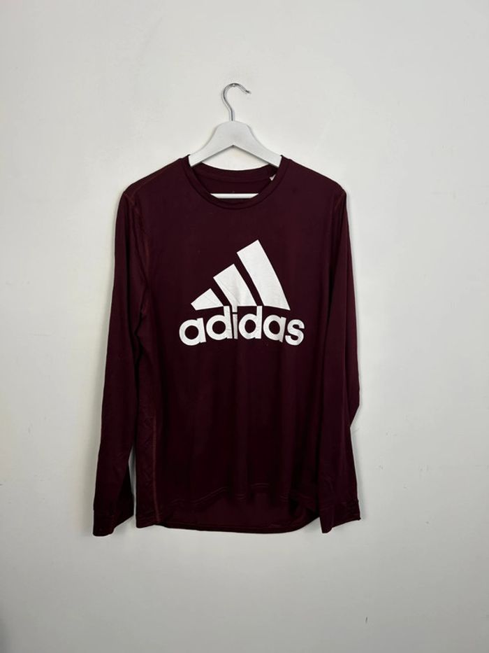 T-shirt Longues Manches Adidas Homme Bordeaux L | Très Bon État | Sportswear Vintage | TN104 - photo numéro 1