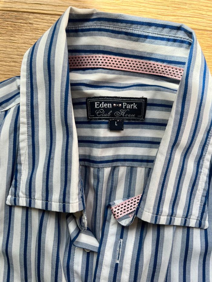 Vends chemise rayé blanc et bleu manche longue Eden Park L très bon état - photo numéro 1