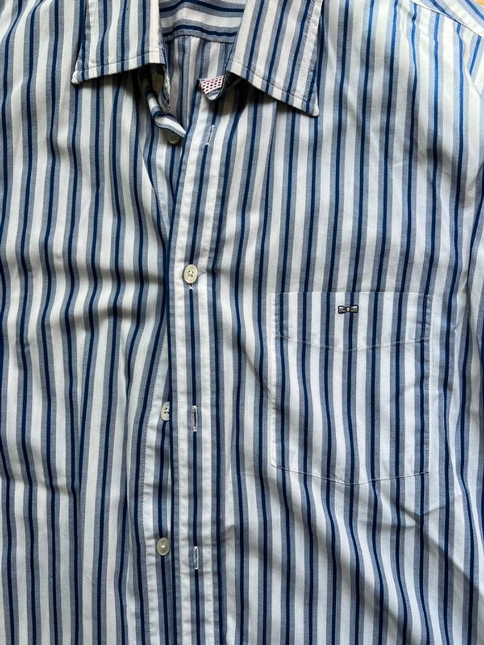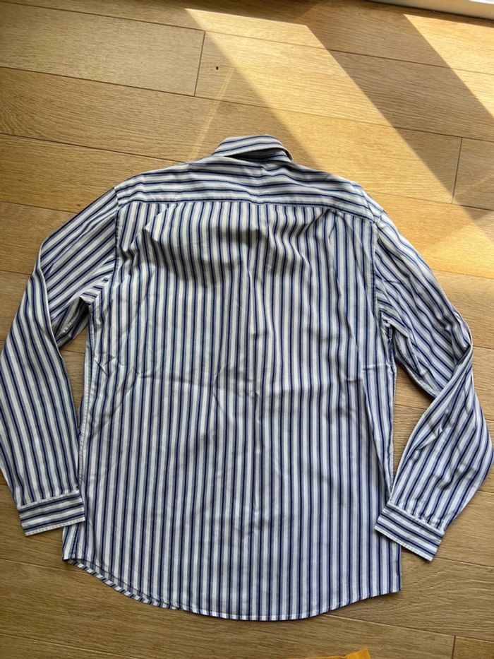 Bonjour, Je vends une chemise rayé blanc et bleu Manche longue Eden Park Taille L Très bon état Acheté neuf 110€