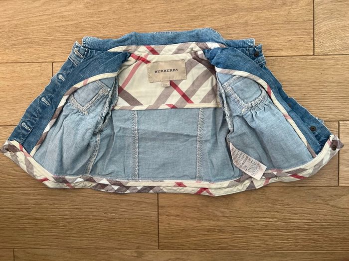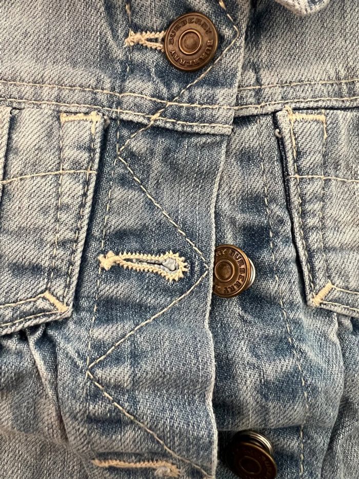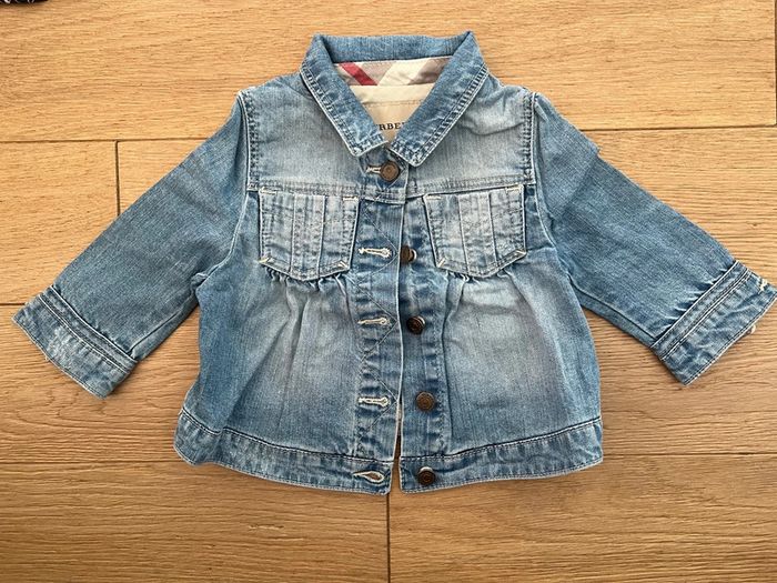 Bonjour, Je vends veste en jean burberry très bon état Taille 6 mois Acheté neuf 240€