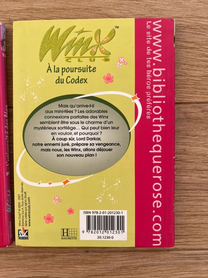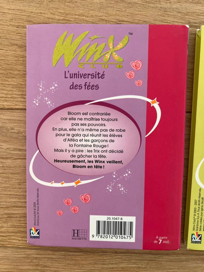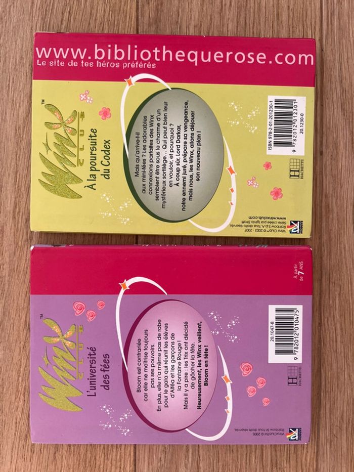 Bonjour, Je Vend lot de 2 livres bibliothèque rose winx bon état N- 3 l’université des fées N- 10 a la poursuite du codex Acheté neuf 11€