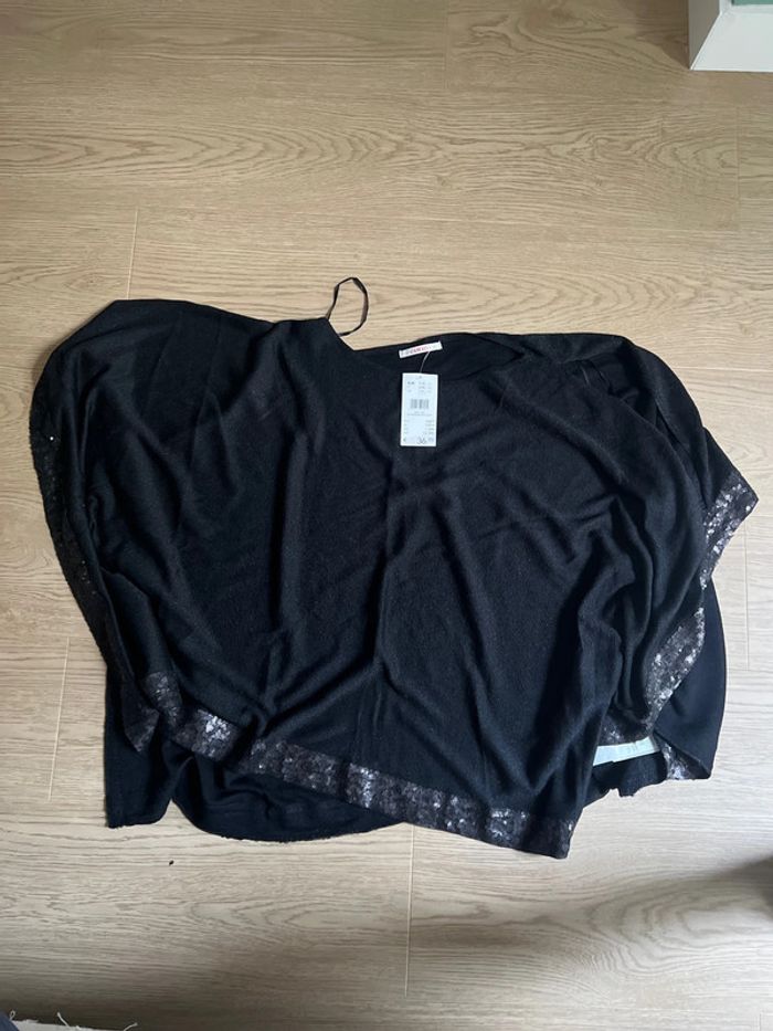 Poncho noir élégant taille 1/2 camaïeu état neuf étiquette - photo numéro 1