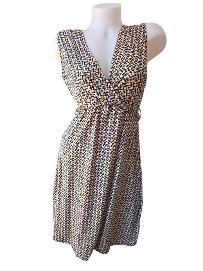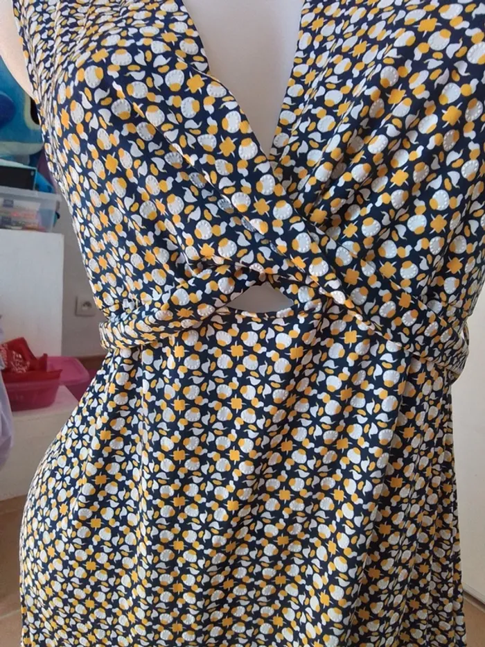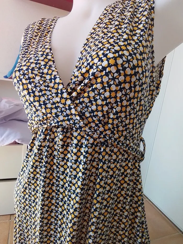 Jolie robe hyper légère, croissé devant et se réserve derrière pour un joli effet Dimension: Aisselle à Aisselle 53cm Hautde l’épaule au bas 92cm Matière : 95% polyester 5% elasthanne