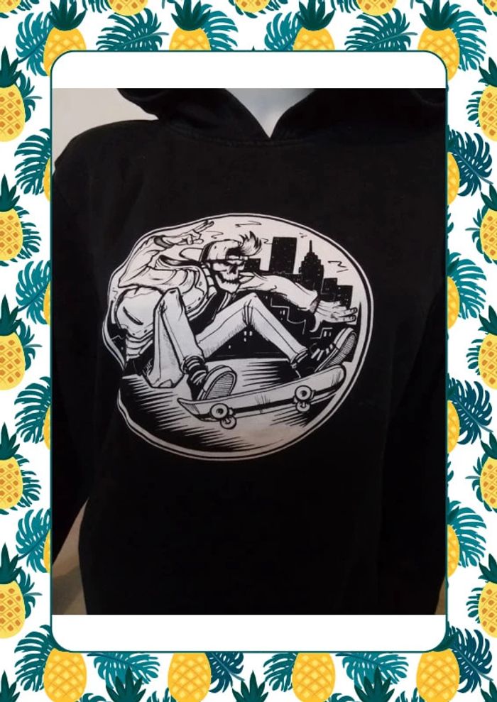 Sweat avec impression sur le devant, très large. Noté S / 16 ans 164-176cm Matière 100% coton Dimension: aisselle à aisselle 54,5cm, haut de l epaul au bas 66cm #sweatacapuche #kiabi #femme34 #femme36 #fille16ans #vetementsfemme34veda307 #vetementsfemme36veda307 #vetements16ansfilleveda307
