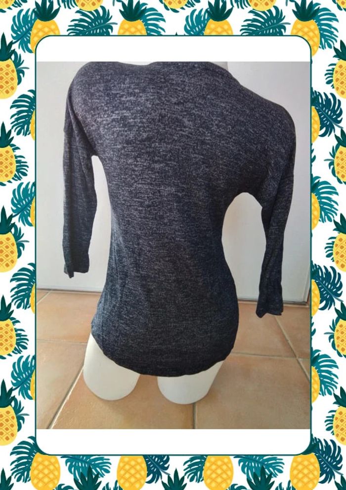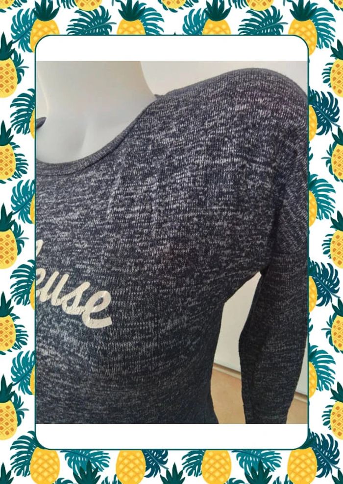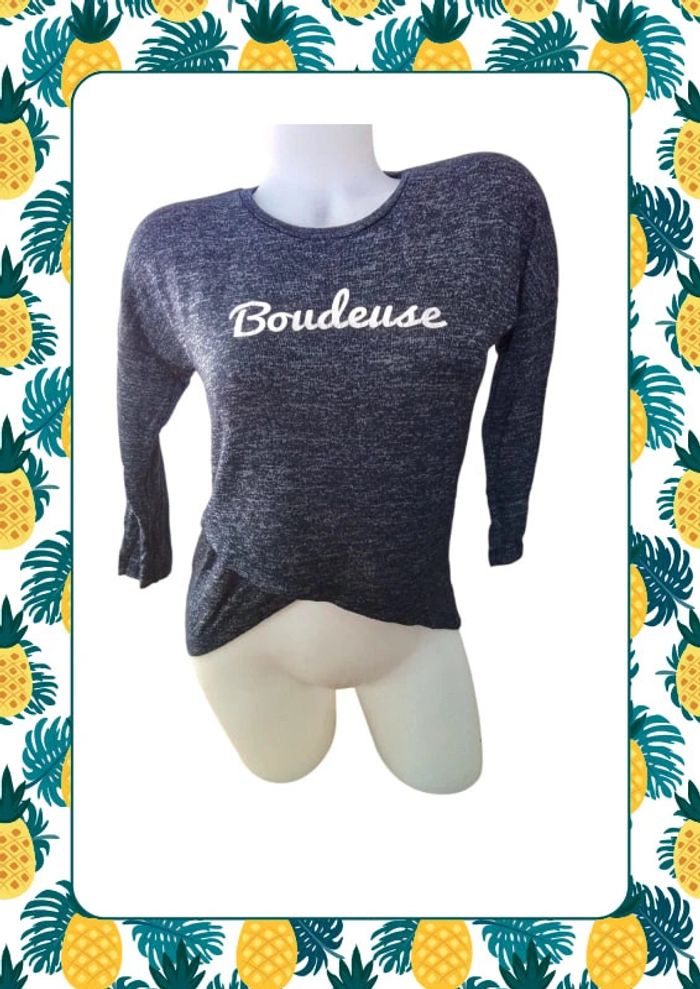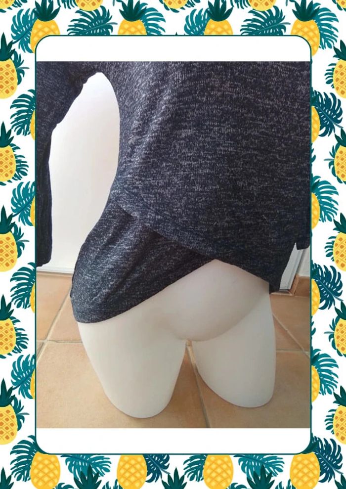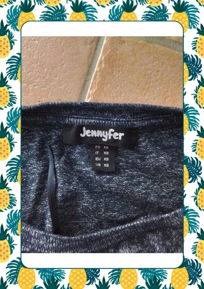 Joli pull long à l arriere et croisé sur le devant à partir de la taille Taille xs size 61cm au plus long à l arriere Du col au plus court devant 34cm Motif boudeuse et manche 3/4 #jennyfer #femmetaille34 #pullfemme34 #vetementsfemme34veda307