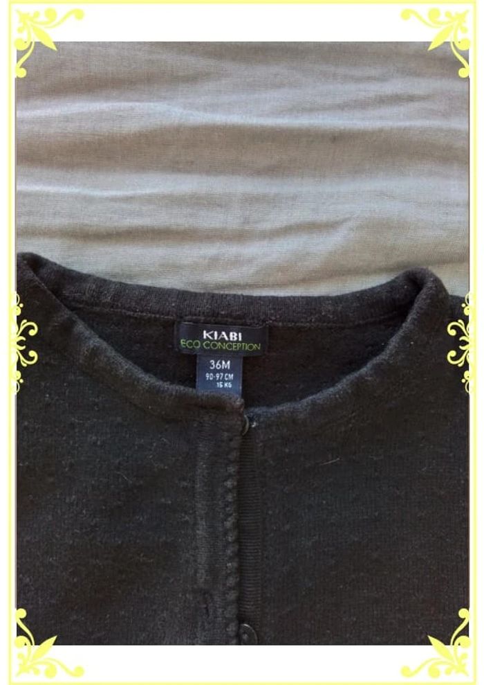 Gilet noir avec relief de petit point Peu porté Noté 36mois 90-97cm 15kg Matière 100% coton #giletfille #kiabi #enfantfille #vetements3ansfilleveda307