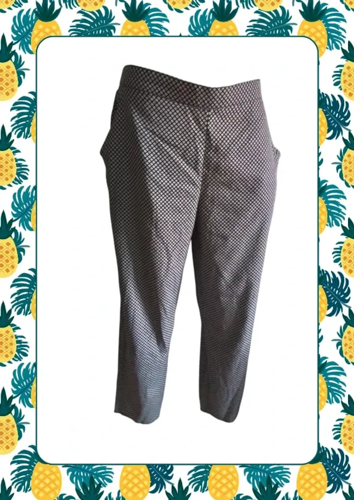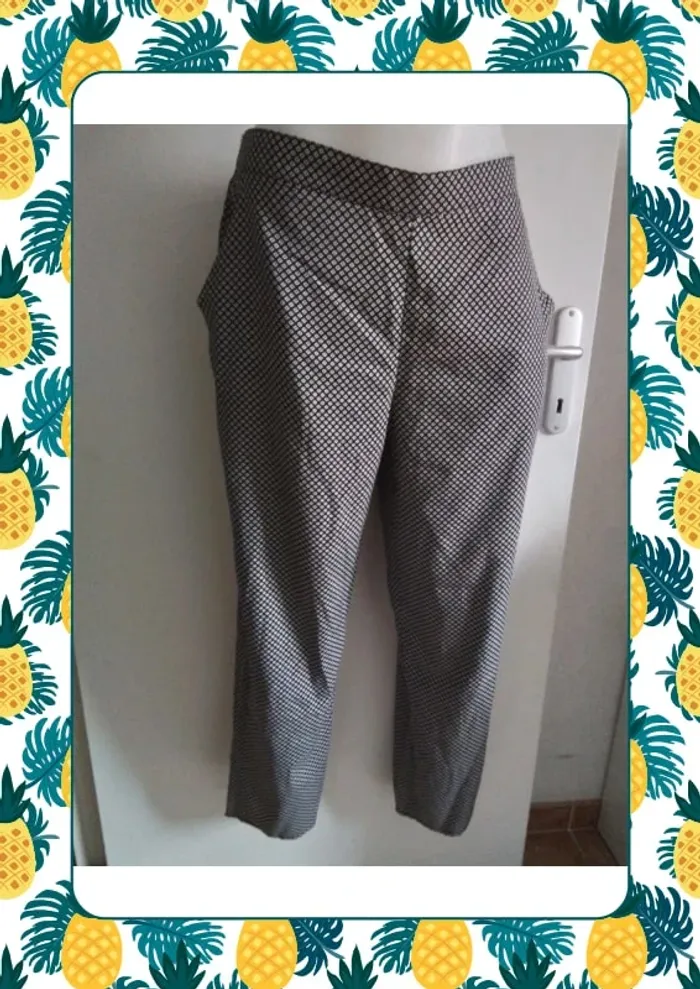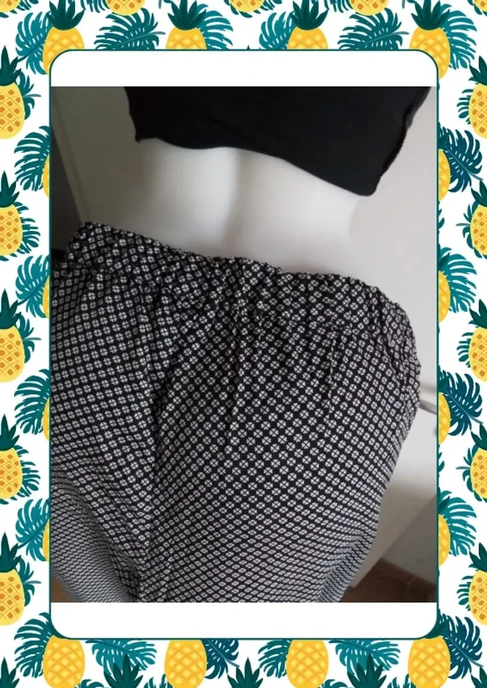 Pantalon idéal ete, matière fluide, poches sur les cotés Neuf jamais porté erreur de taille Matière 100% polyester Dimension d’une couture à l’autre Tour de taille 43cm jusqu'à 52cm (taille elastique à l’arrière) Longueur de la ceinture au bas 98,5cm Longueur de la ceinture à l’entre jambe 29,5cm Tour de cuisse 31cm