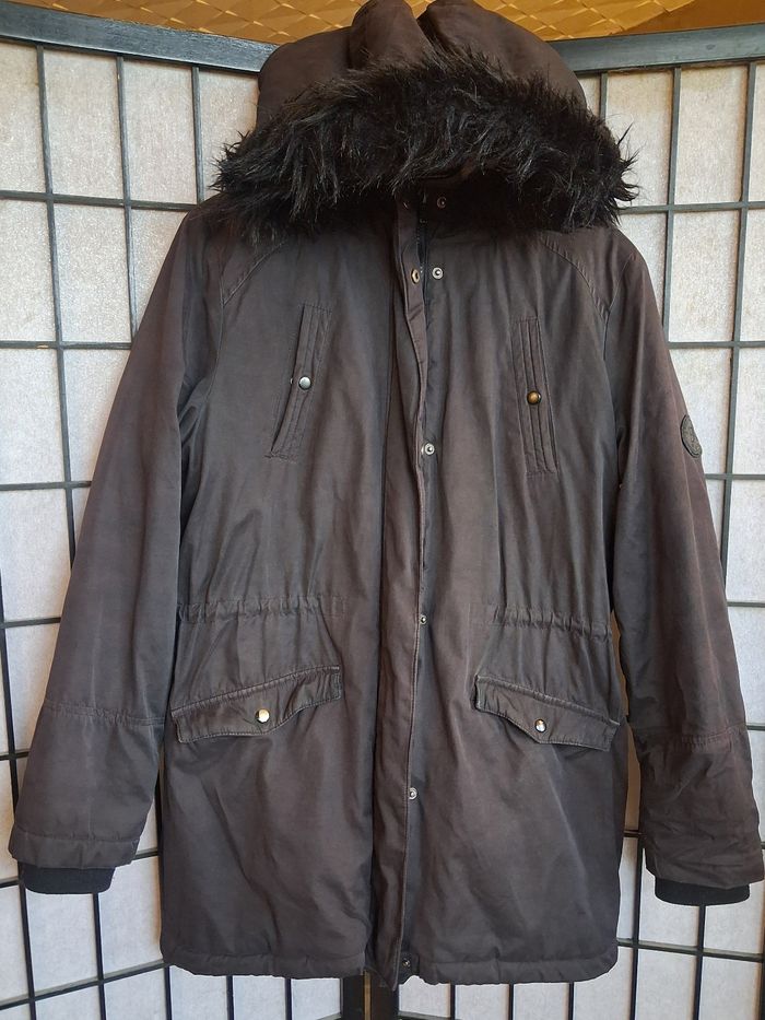 Manteau d'hiver. Rembourré dans le dos et capuche. En bon état général, pas de crainte il est bien noir de partout