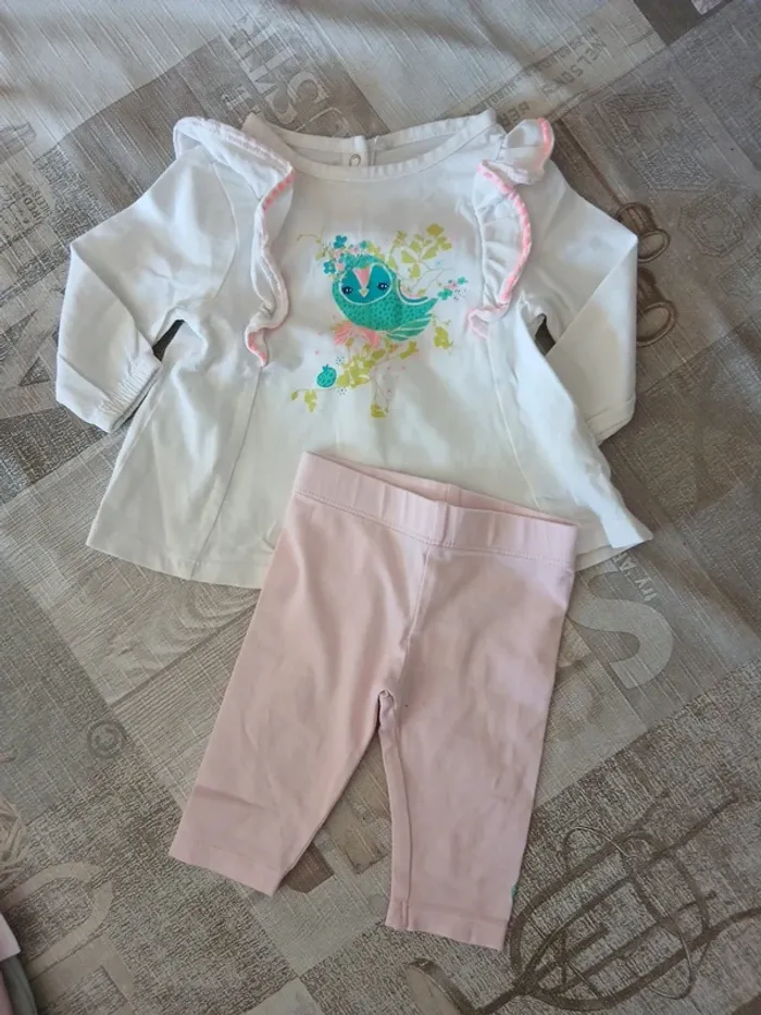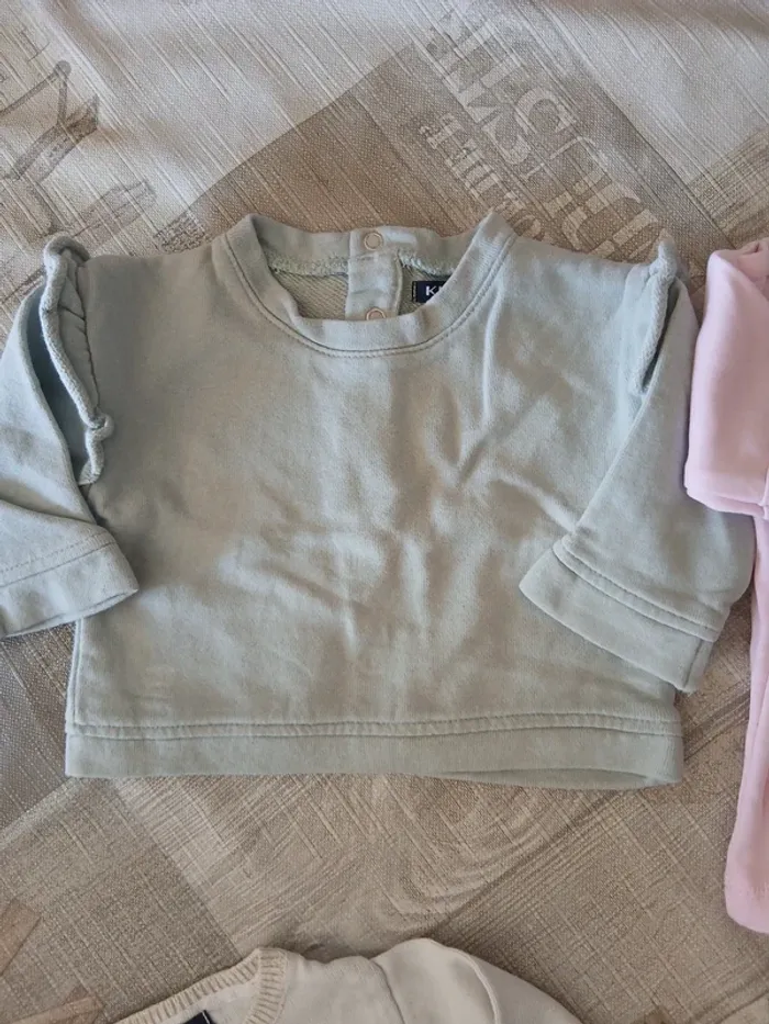 Lot fille idéal pour l'automne, 1 Tee-shirt manches courtes, 1 ensemble Orchestra, 1 gilet kiabi, 1 sweat kiabi, 1 paire de chaussons sucre d'orge.
