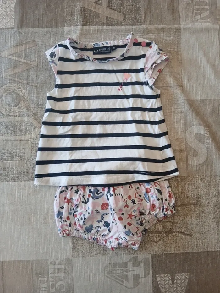 9 mois, tee-shirt marinière et short, collection 2025