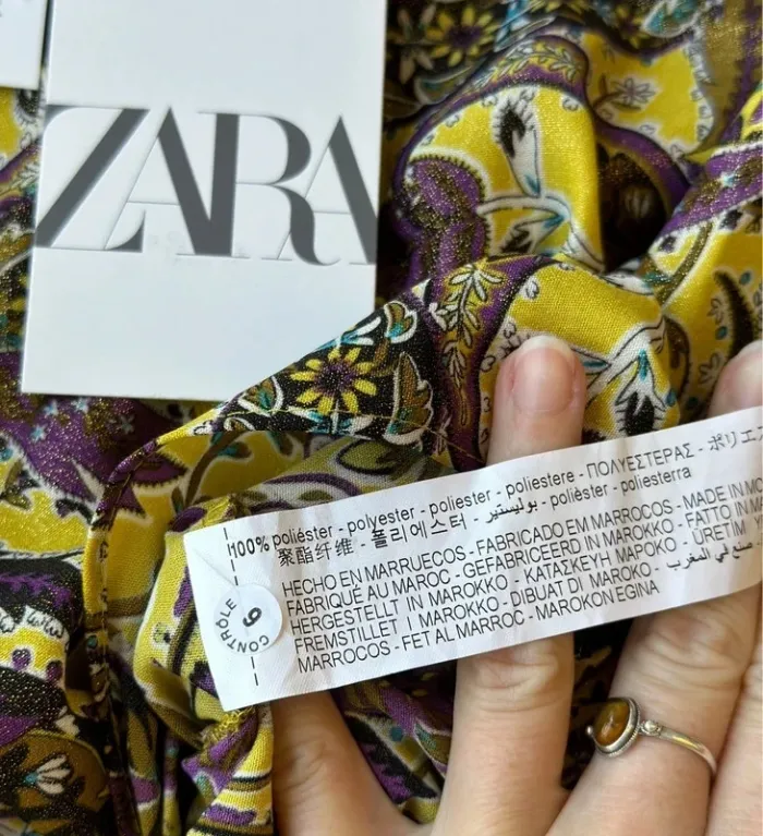 Blouse courte imprimé cachemire paisley jaune et violet, taille XS - Zara - photo numéro 11