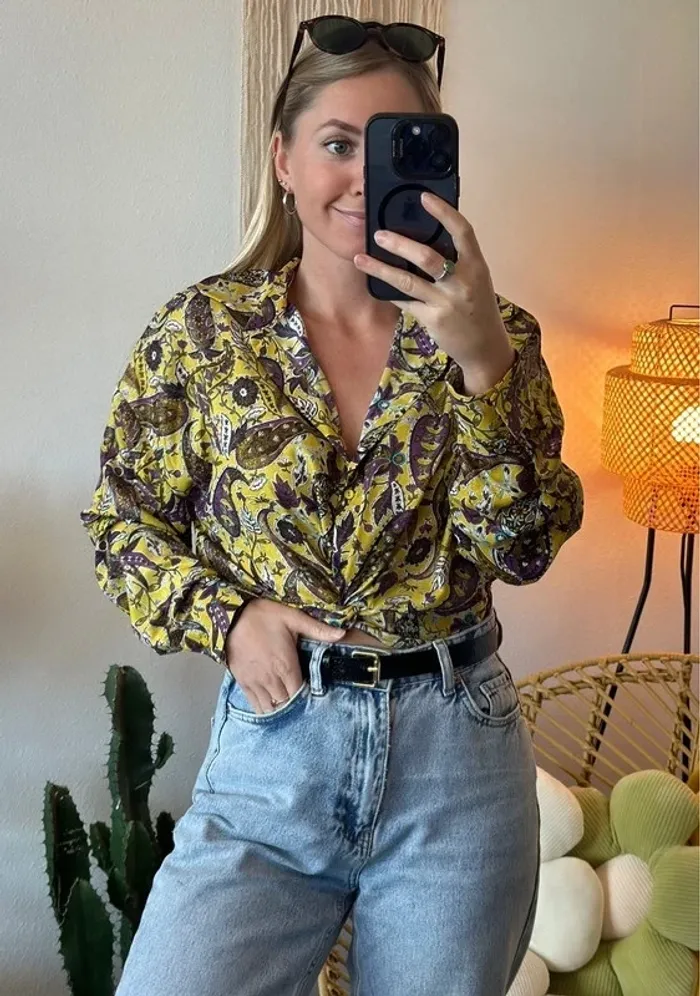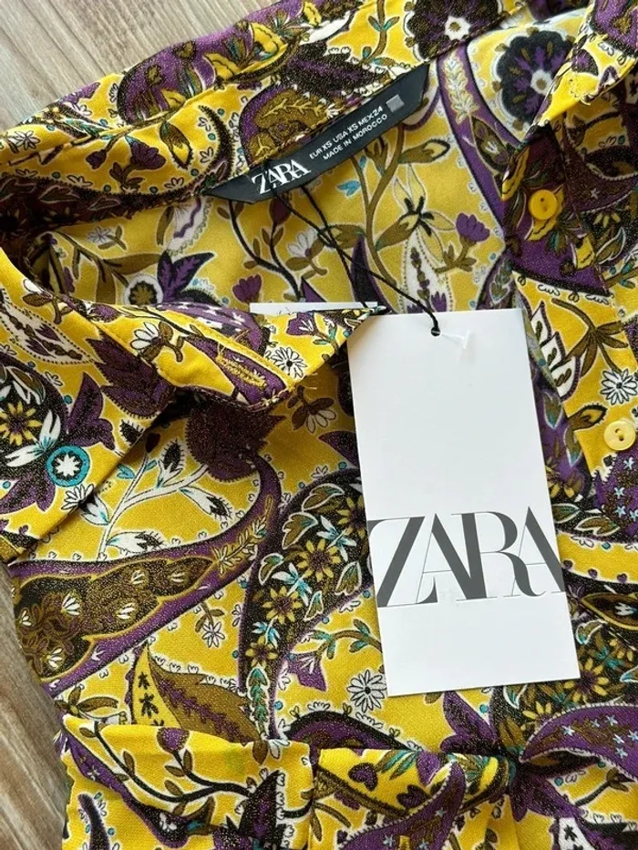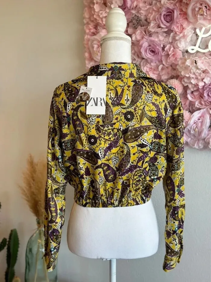 Blouse courte imprimé cachemire paisley jaune et violet, taille XS - Zara - photo numéro 1