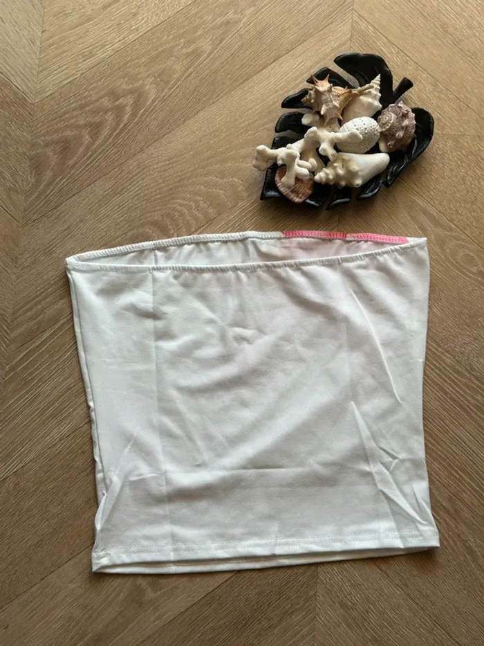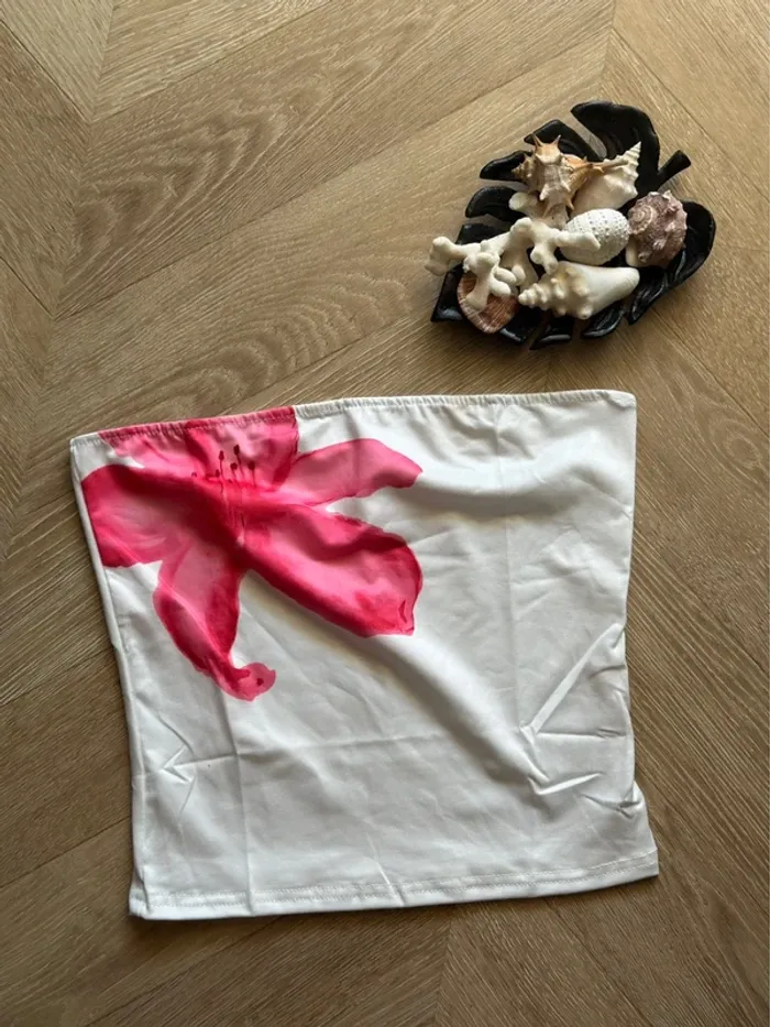 Top bustier imprimé floral blanc rouge et rose – Taille S neuf - photo numéro 2