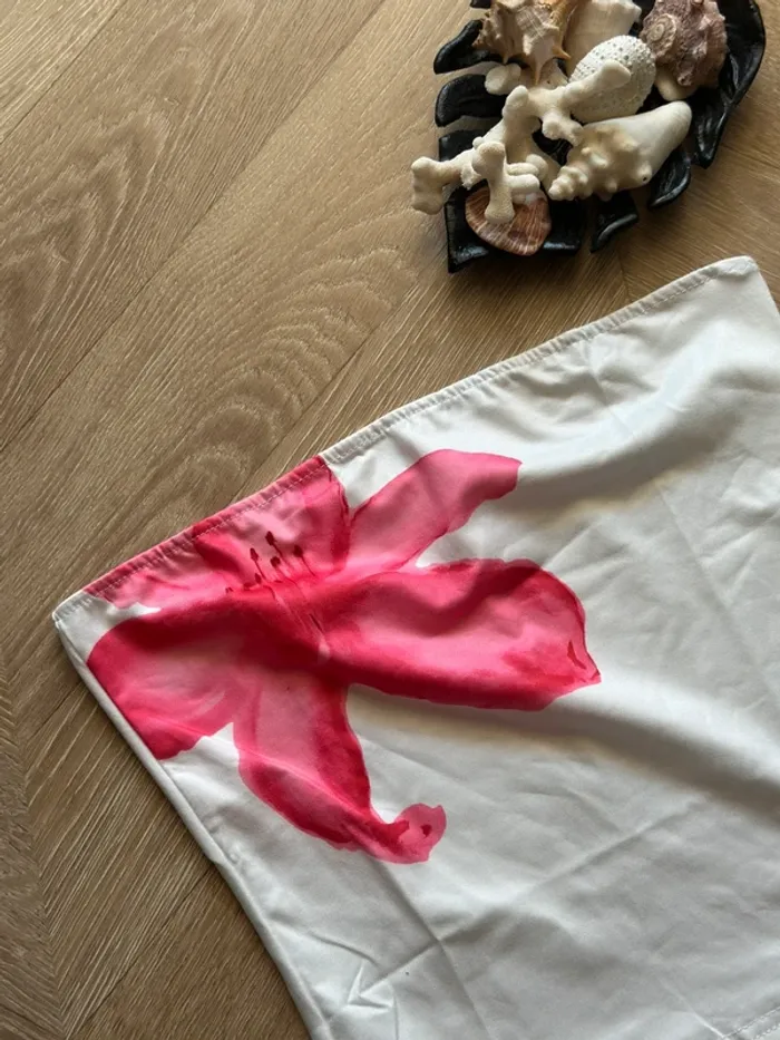 Top bustier imprimé floral blanc rouge et rose – Taille S neuf - photo numéro 5