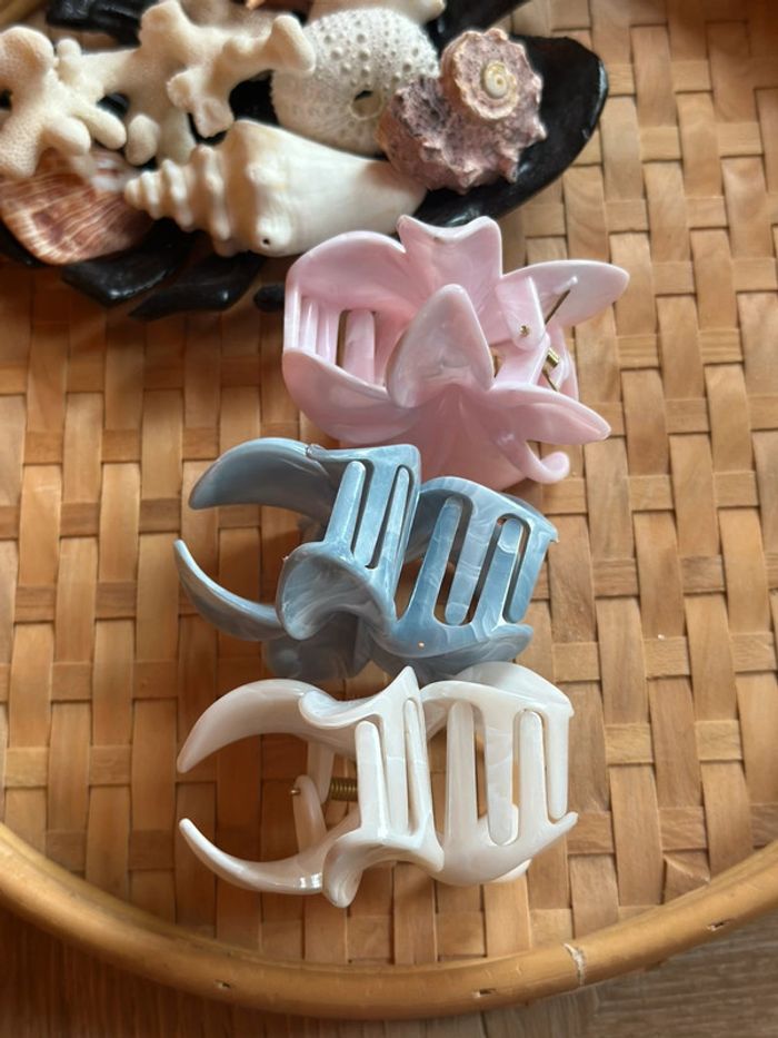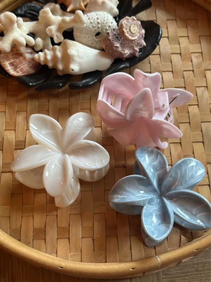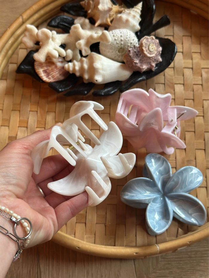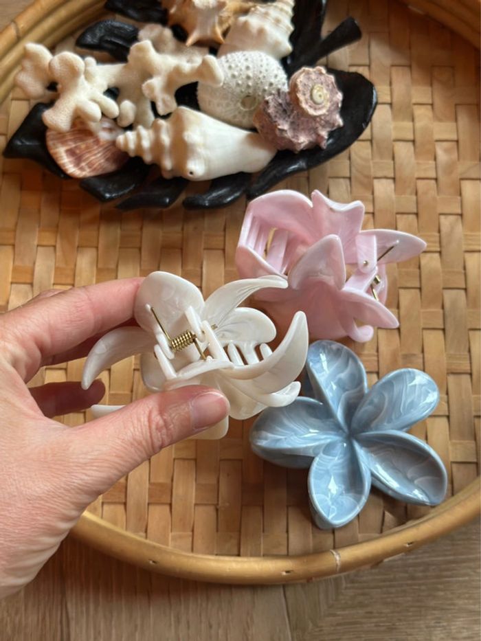 Pinces à cheveux en forme de fleur, neuves et jamais utilisées. Très bonne tenue, parfaites pour attacher les cheveux, même épais. Design élégant et original, idéal pour ajouter une touche stylée à vos coiffures. -> Prix : 3€ la pince - prix fixe • Diamètre 8 cm de large x 6,5 cm de hauteur