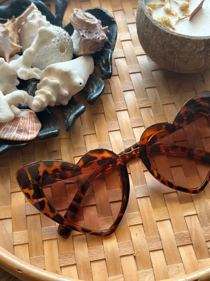 Lunettes de soleil en cœur motif léopard (neuves) - photo numéro 1
