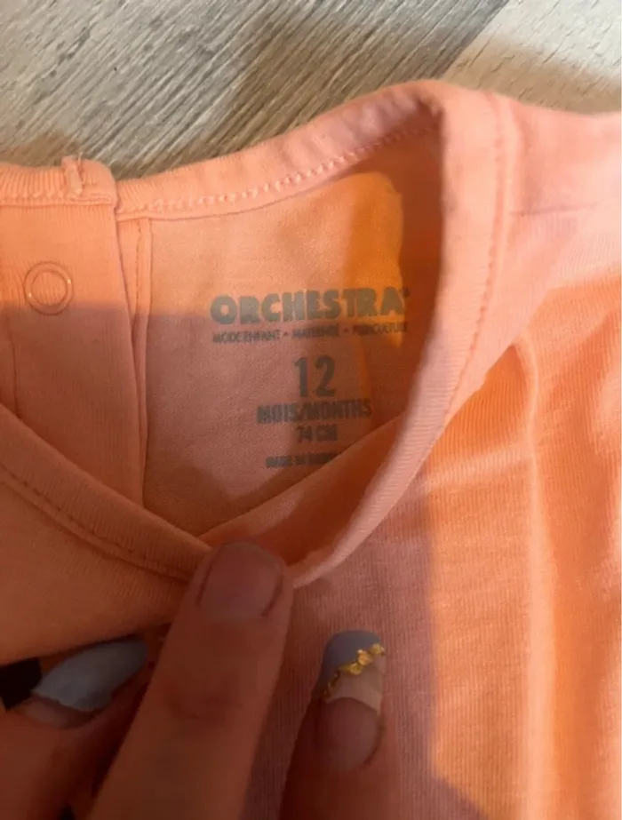 Tee shirt rose/ saumon orchestra bb fille 12 mois 🍎