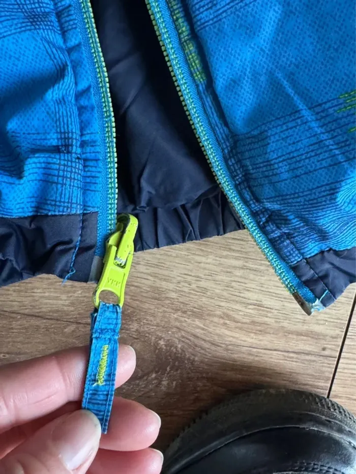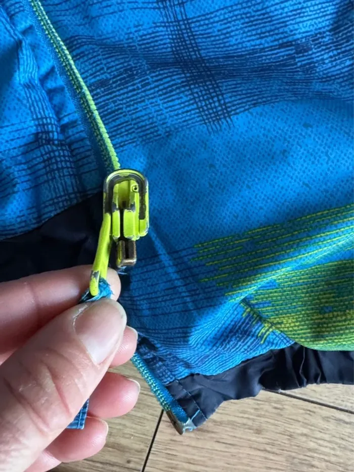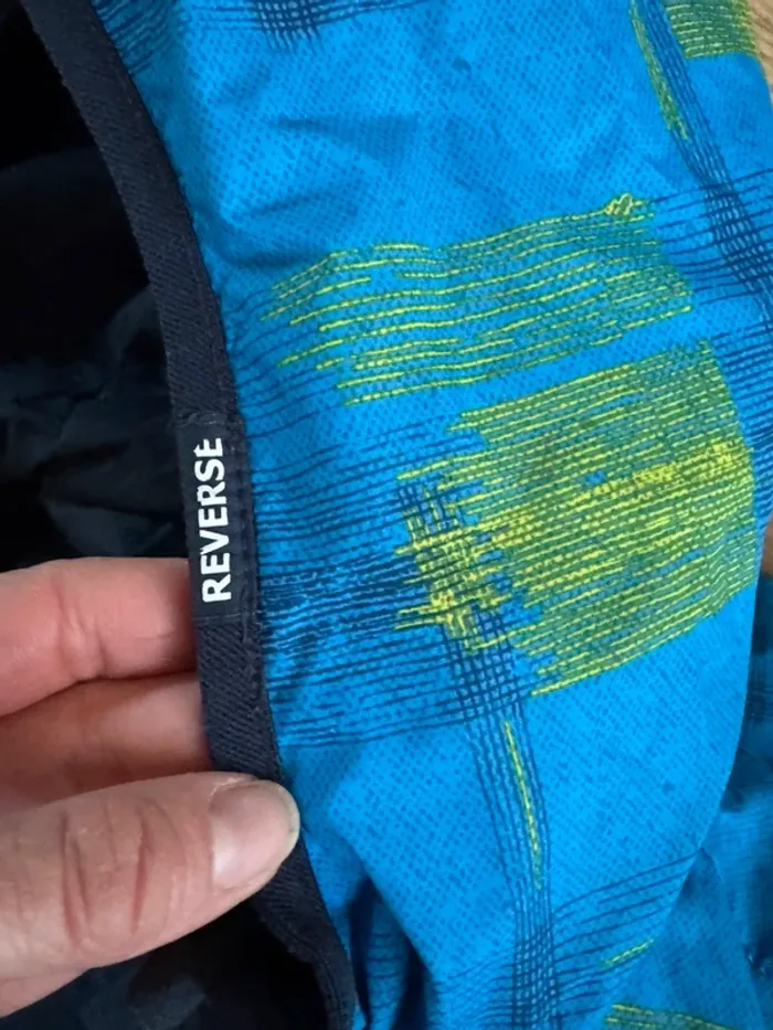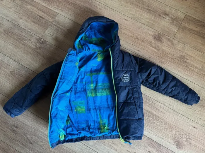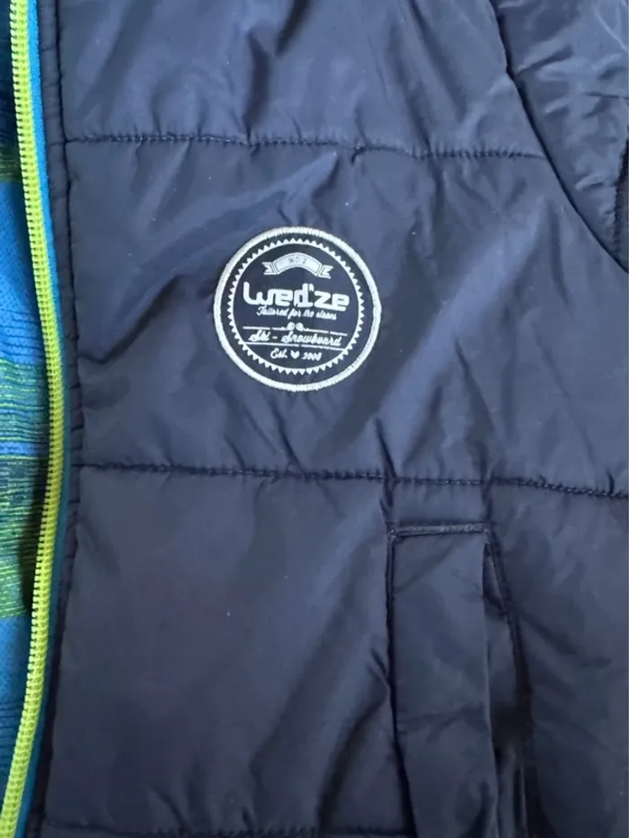 Blouson de ski réversible 6 ans ( 115-124 cm), de marque Wed’ze de chez Décathlon, de couleur bleu marine d’un côté et bleu clair et jaune de l’autre côté. Fermeture éclair réversible. Blouson en bon état. Maison non fumeur et sans animaux. Envoi rapide et soigné.