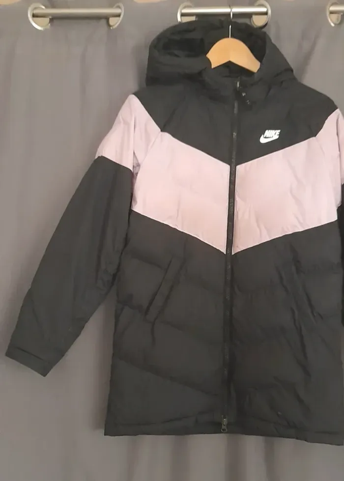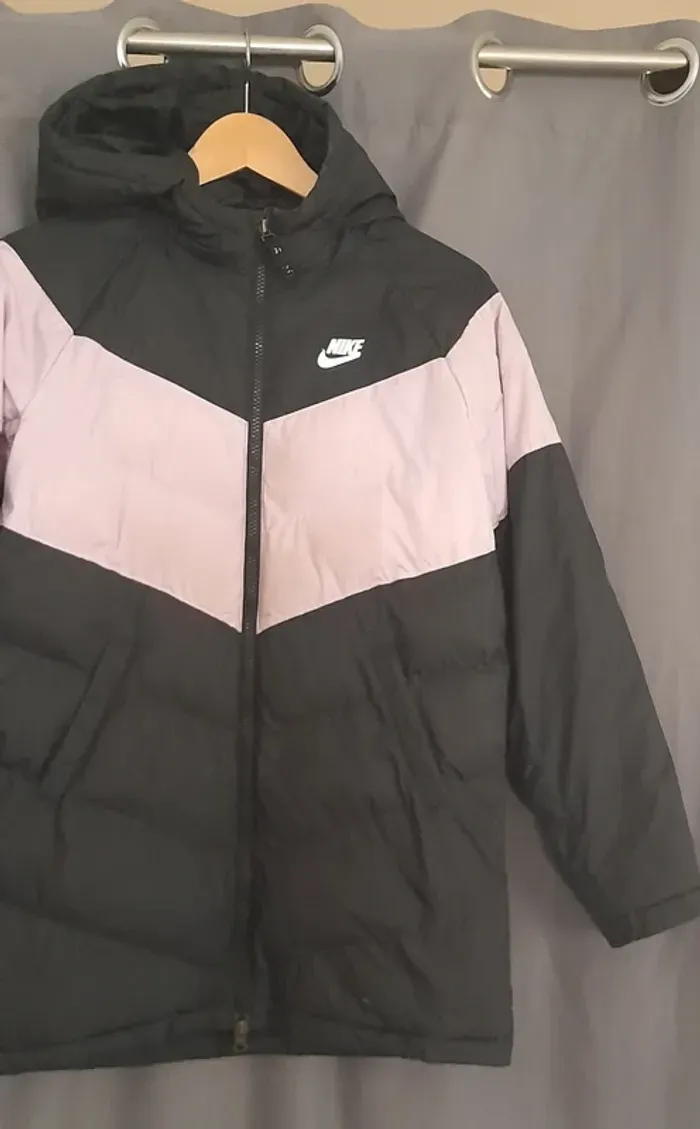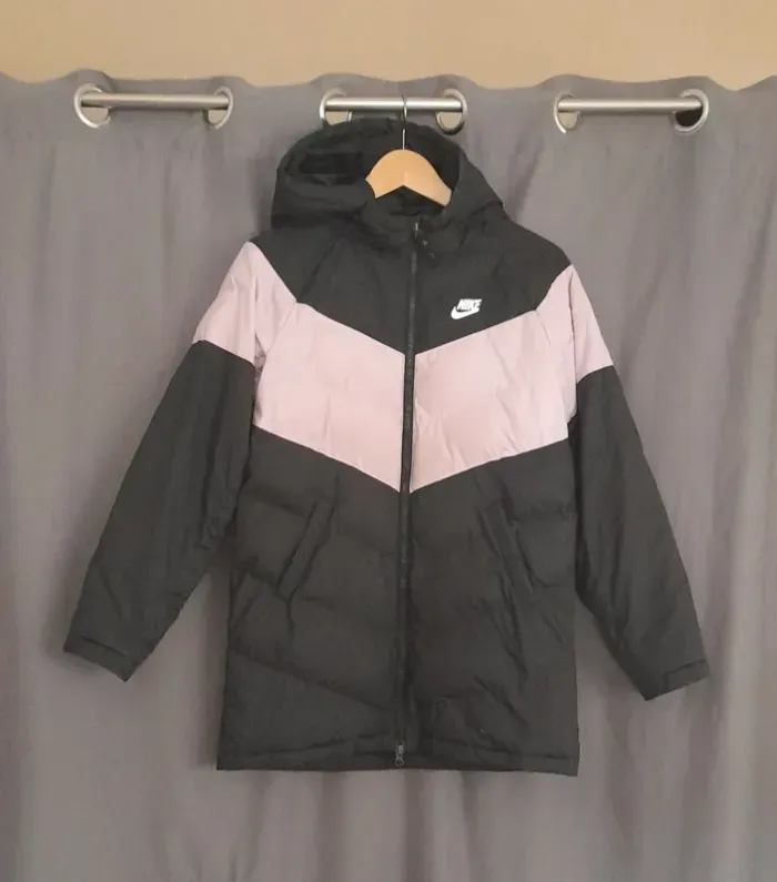 Doudoune matelassé assez longue de chez Nike. Couleur noir et rose. Taille L enfant qui correspond à du 12-13ans. En parfait état. #FILLE12ANS_vanesslavaness #doudounenikefille12ans #doudoune12ansfille #nike12ansfille