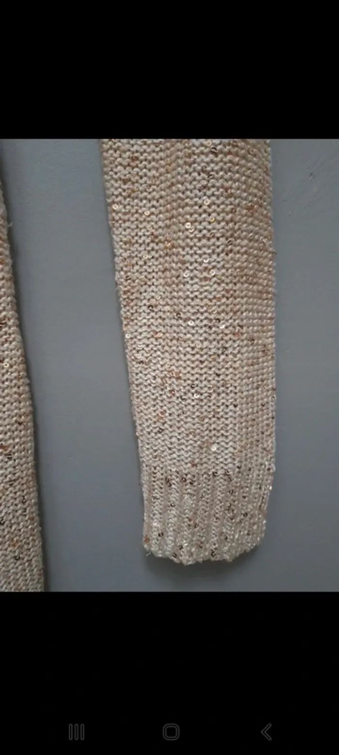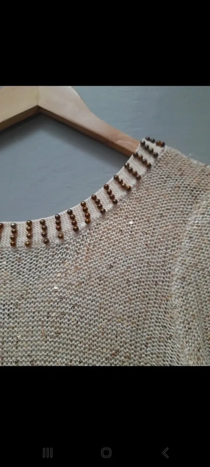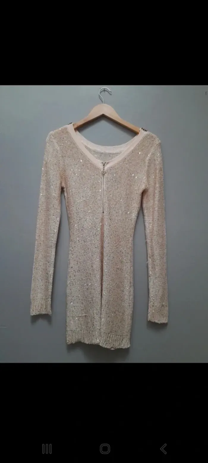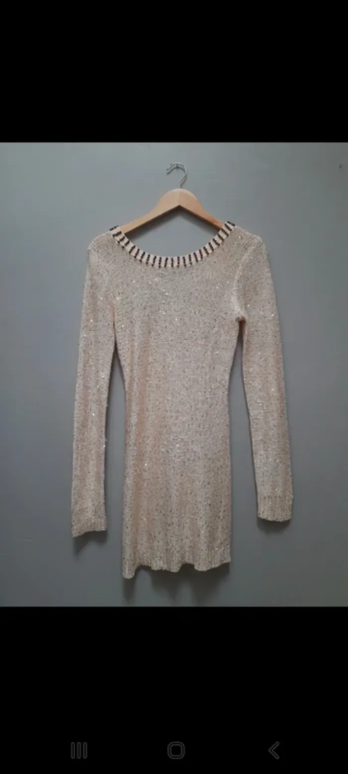 Magnifique robe pull avec sequins et détails perles aux cols. Taille unique qui conviendra à du XS-S. Couleur beige et sequins doré, elle est en excellent état. #FEMME34XS_vanesslavaness #FEMME36S_vanesslavaness #robepull #sequins #femme36 #femme34 #f&p #fashion #fête