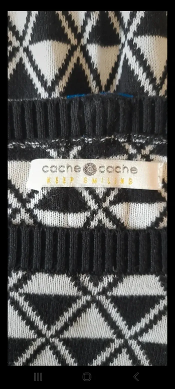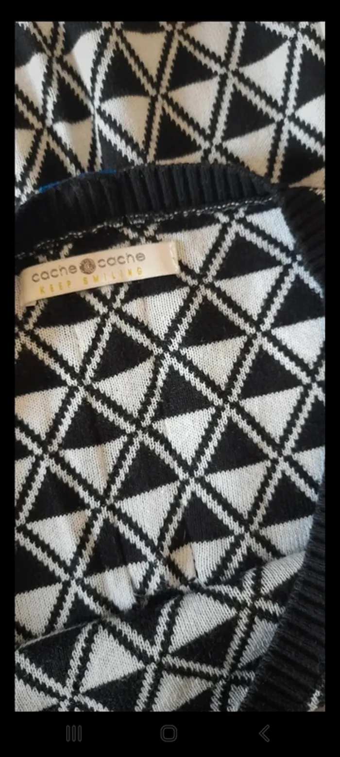 Jolie pull aux motifs noir et blanc de chez Cache Cache. Taille 38 #FEMME38M_vanesslavaness #pull38 #pullfemme38 #pullmotif38 #pullmotiflosange38