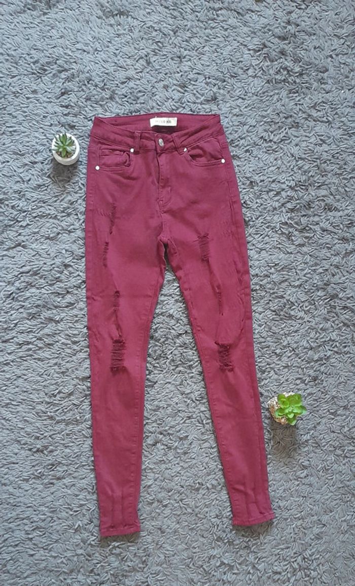 Jean en coupe Skinny de chez Hello Miss. Taille 36. Couleur bordeaux. En parfait état. #FEMME36S_vanesslavaness #femme36 #jeans36 #jeanskinny36 #jeanbordeaux36