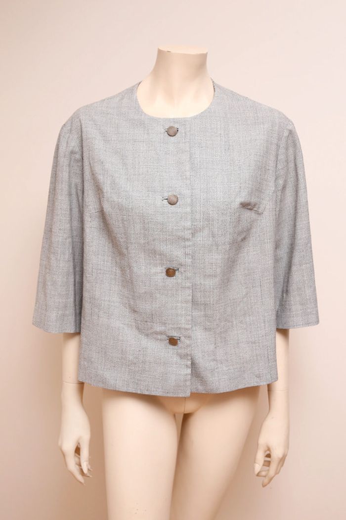 Plus d'étiquette de taille, voici les mesures: 58cm environ d'aisselle à aisselle 61cm du col au bas Légère.