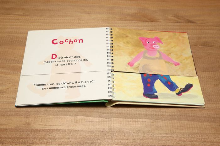 Des pages découpées pour jouer à assembler des images. Juste une petite marque au dos de la couverture.