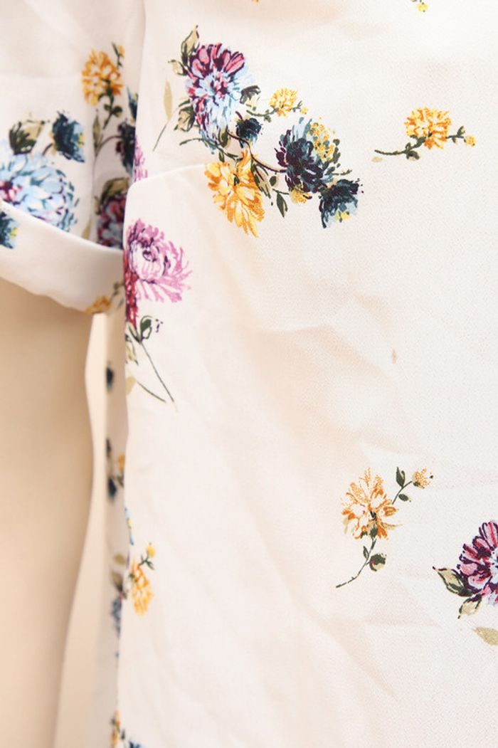 Quelques petits défauts dont une petite tache (photo 2). Il y a eu une étiquette thermocollée à l’endroit du col. Plus d’étiquette, donc voici les mesures : Col au bas : 63cm Aisselle à aisselle : 48cm