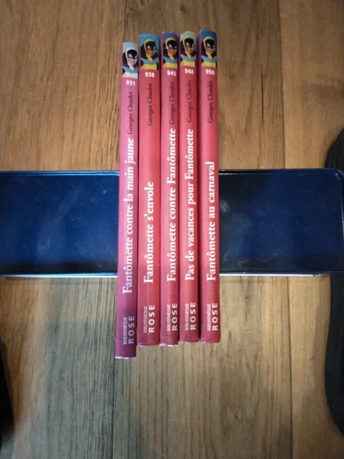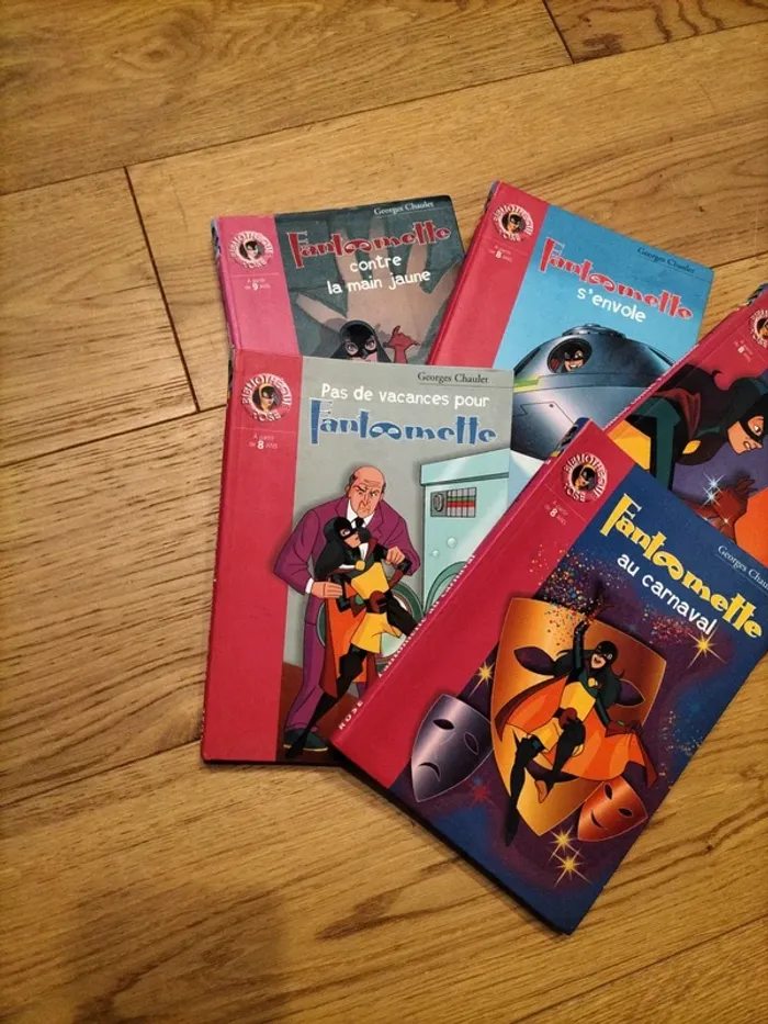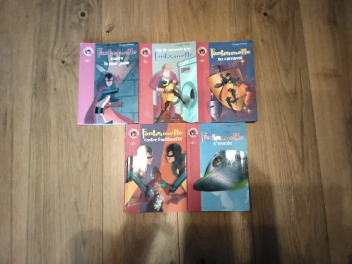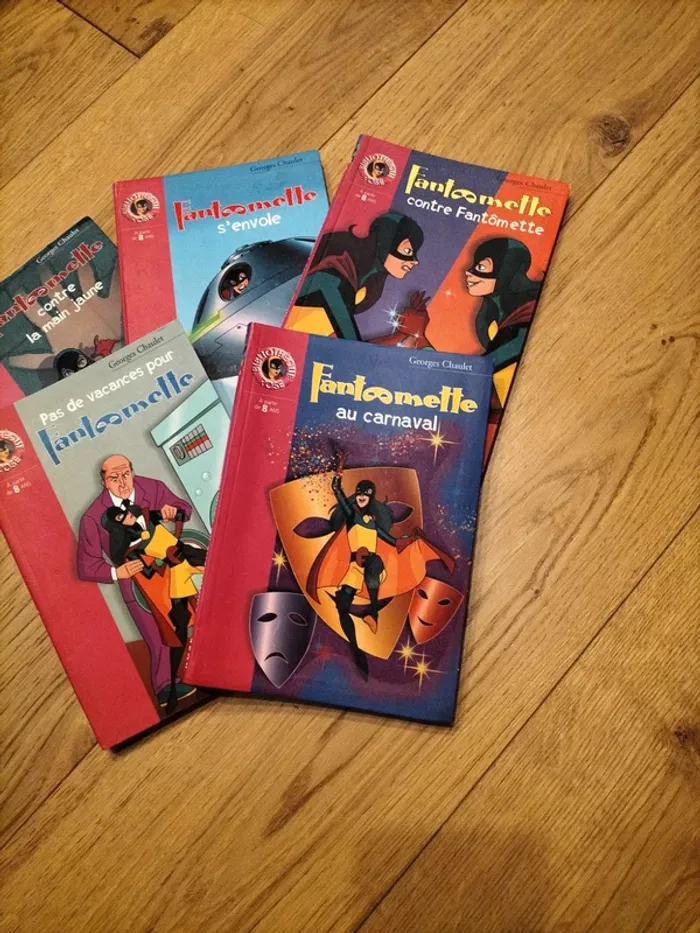 5 livres Fantômette : numéros 931 Fantômette contre la main jaune 938 Fantômette s'envole 945 Fantômette contre Fantômette 948 pas de vacances pour Fantômette et le 958 Fantômette au carnaval. À partir de 8 ans. En bon état, couverture souple. Pas d'illustration.