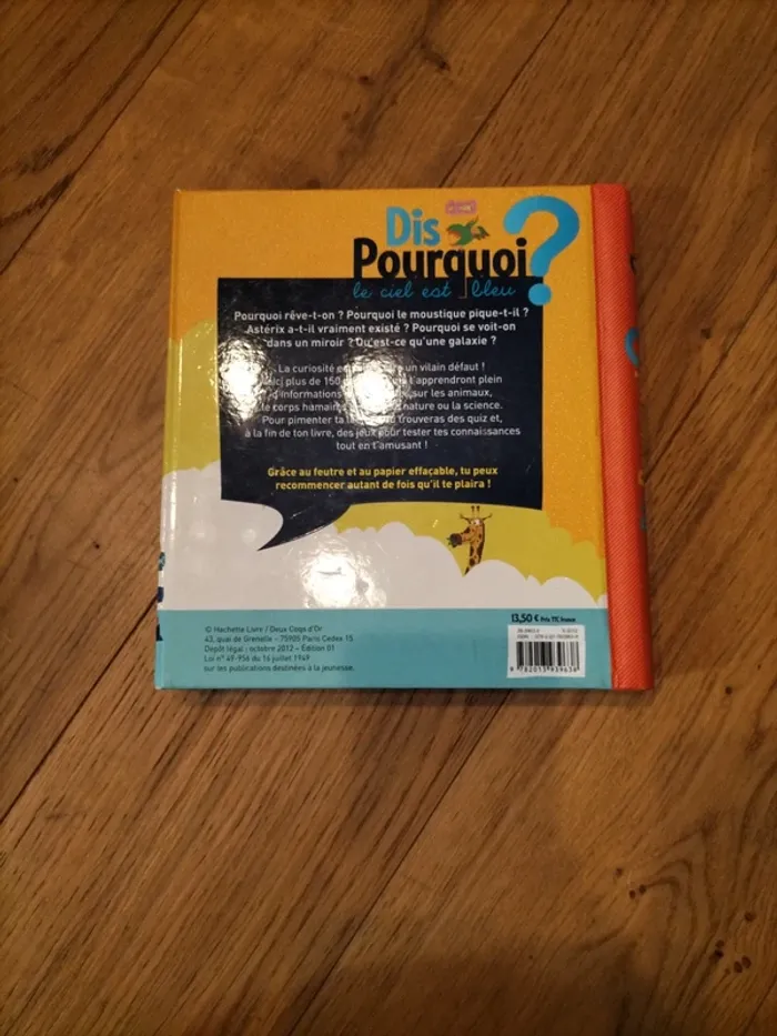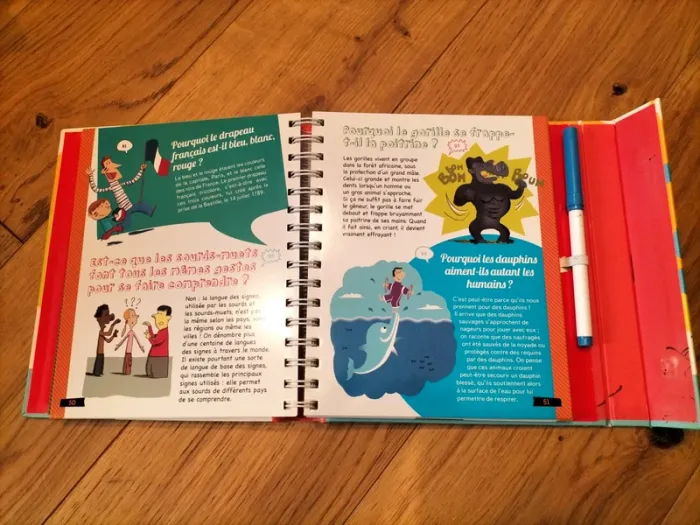 Livre documentaire, 150 questions de toute nature avec des réponses concises, rigolotes et illustrées, et de nombreux jeux à la fin, En bon état, de petits défauts sur la couverture. Pour les enfants de 7 à 10 ans. Un feutre effaçable 20 pages de jeux et 150 questions-réponses... Prix de base 13,50 €.